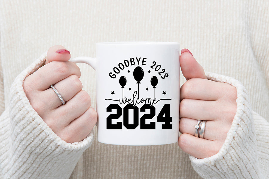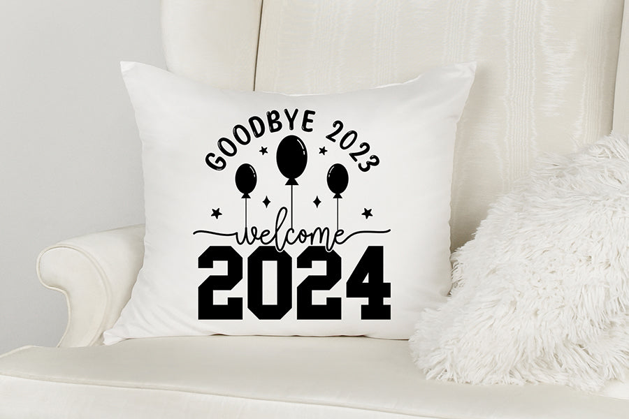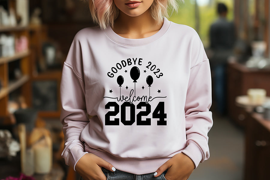 Create eye-catching and festive New Year's Eve products to welcome the arrival of the New Year 2024. This Goodbye 2023 Welcome 2024 SVG New Year Shirt design is ideal for crafts, gifts, and decorations your any Happy New Years project. Create t-shirts, mugs, tote bags, cards, hoodies, pillows, and much more with this funny graphic.