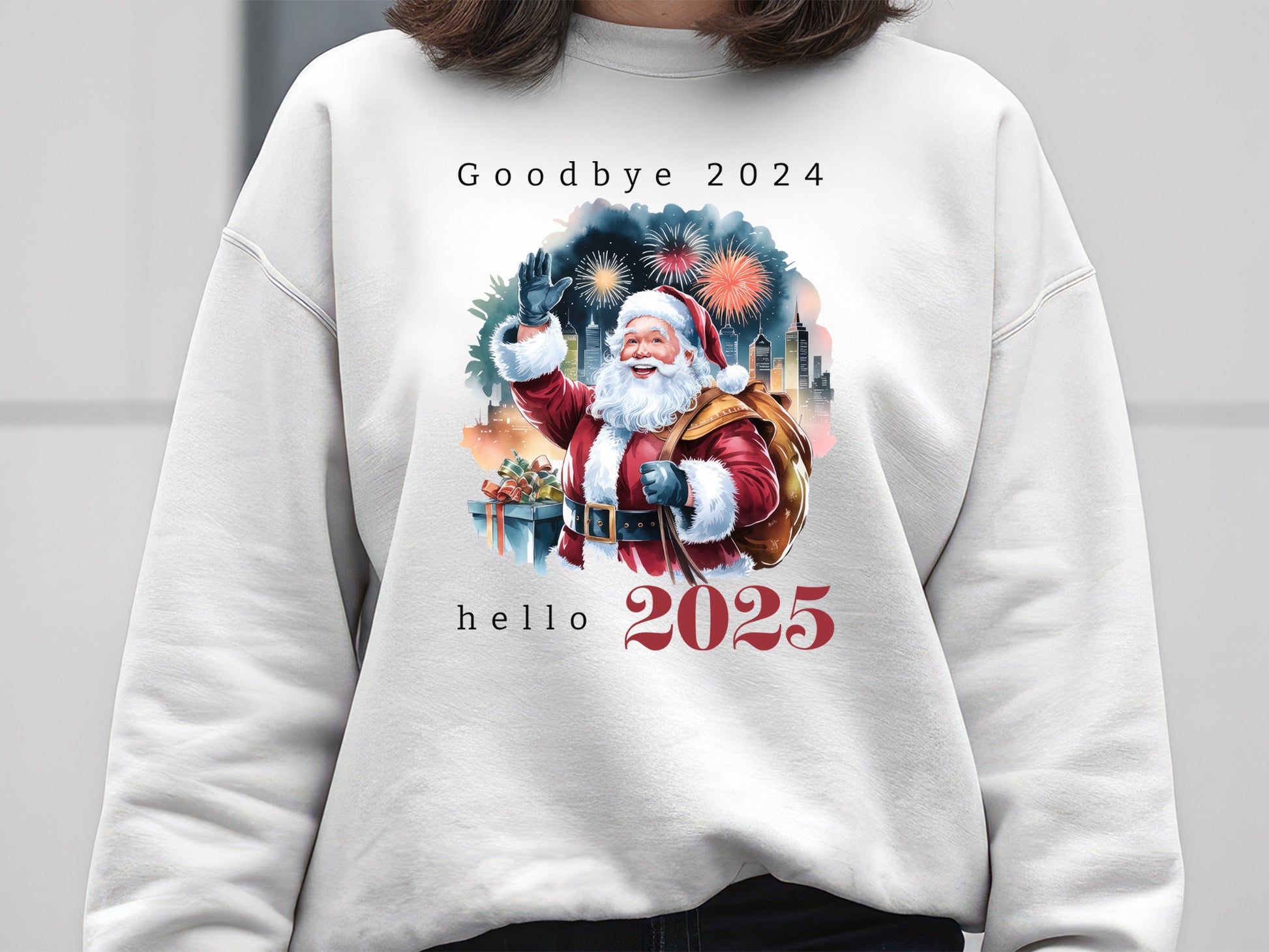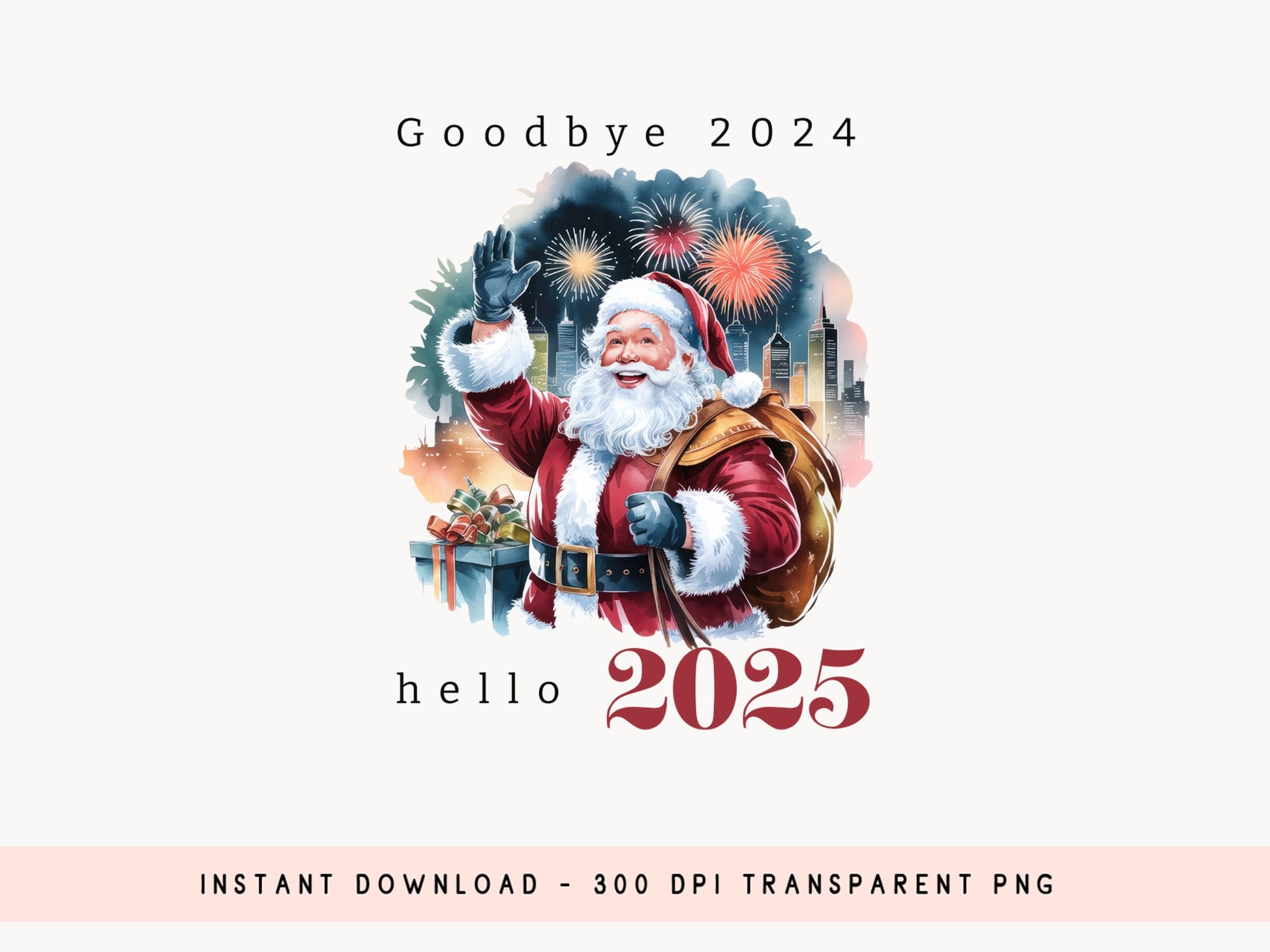 Purchase our "Goodbye 2024 Hello 2025 - New Year PNG Sublimation design, ideal for printing a variety of items like t-shirts, mugs, totes, sweatshirts, and more. With a cheerful Santa Claus waving goodbye to 2024 and welcoming 2025, it brings a joyful touch to any New Year’s project. The high-quality PNG file with a transparent background is perfect for creating standout sublimation designs. Whether crafting keepsakes or celebrating with friends, this New Year PNG Sublimation design adds a heartfelt, festive touch to the transition from 2024 to 2025. Say goodbye to the past and hello to new adventures with the uplifting New Year’s design! Discover now.
