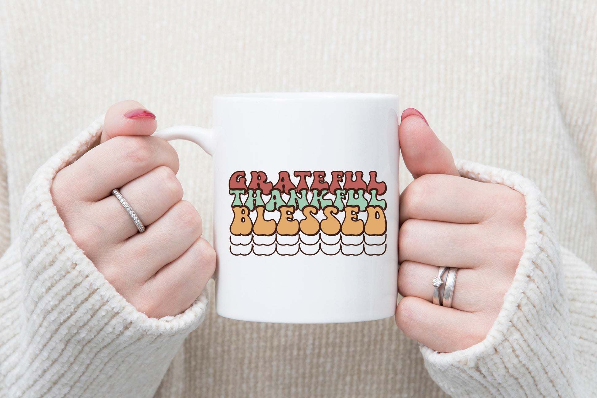 Grateful Thankful Blessed - Retro Thanksgiving PNG