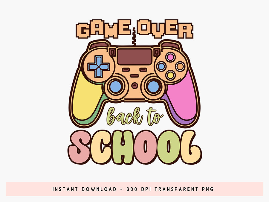 This vibrant Groovy Game Over Back To School Sublimation is the perfect way to kick off the new school year with style. It includes a playful gaming controller that's great for your gifts, apparel, accessories and other school supplies. Elevate your back to school projects with this unique design. You can print physical products as gifts or sell the products you print such as t-shirts, mugs, tote bags and much more with Groovy Game over Back to School Sublimation. Purchase now and make something special for this back-to-school season.