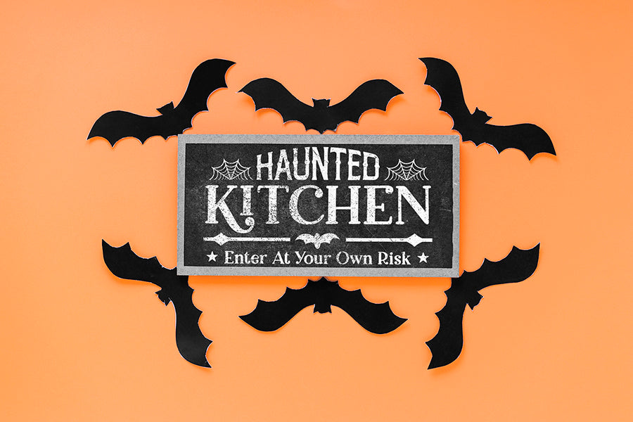 A ghostly kitchen sign SVG design for the Halloween season! You can use this design for wooden signs, stencils, wall decals, kitchen decor, and much more!