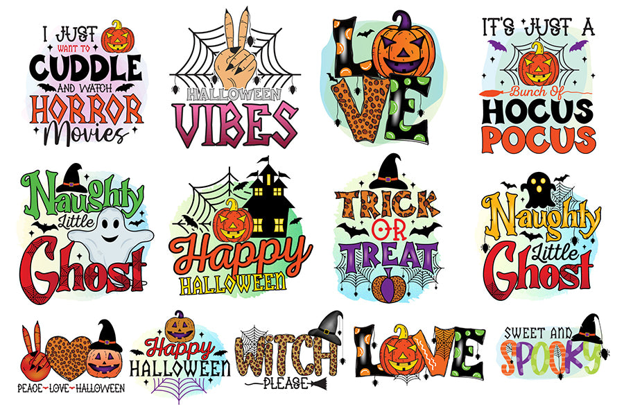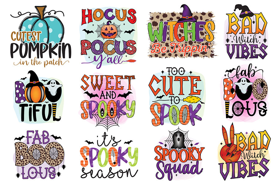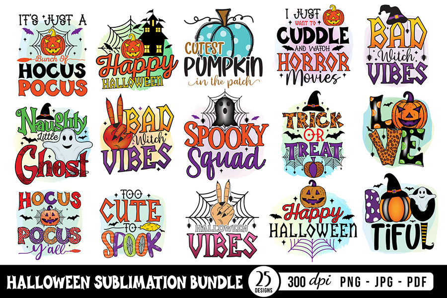 Introducing the Halloween Sublimation Bundle. This unique collection features 25 vibrant and eye-catching designs, perfect for adding a touch of Halloween to any project. These designs are ideal for creating t-shirts, mugs, tote bags, pillows, signs, and much more!