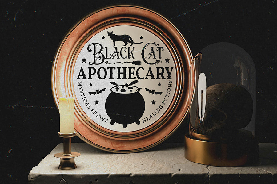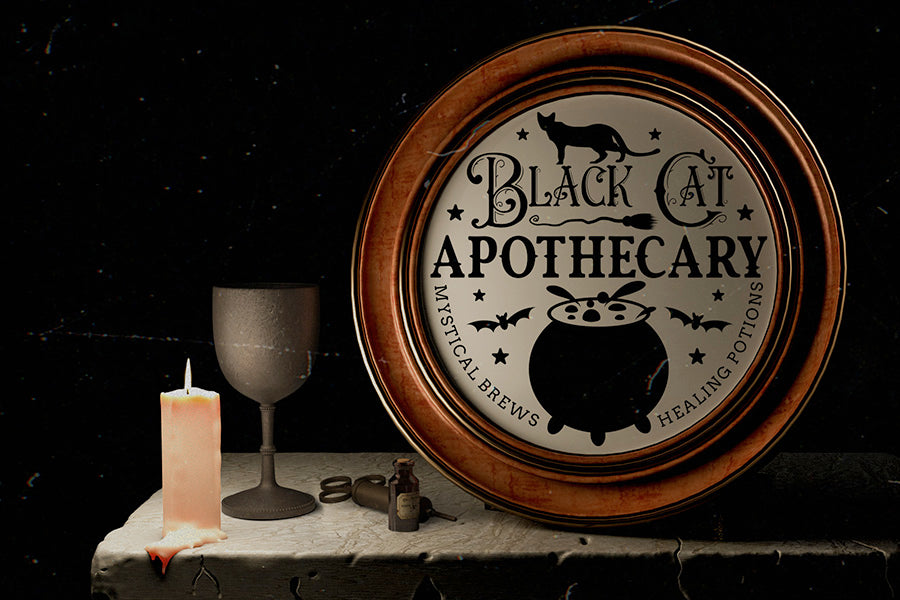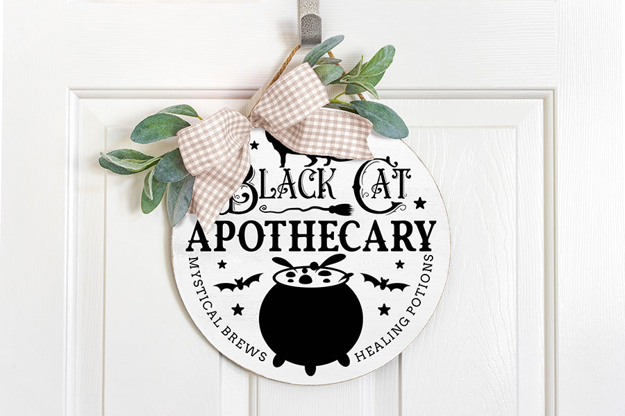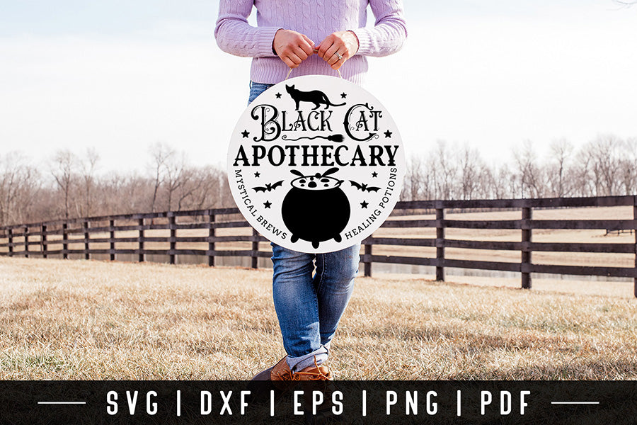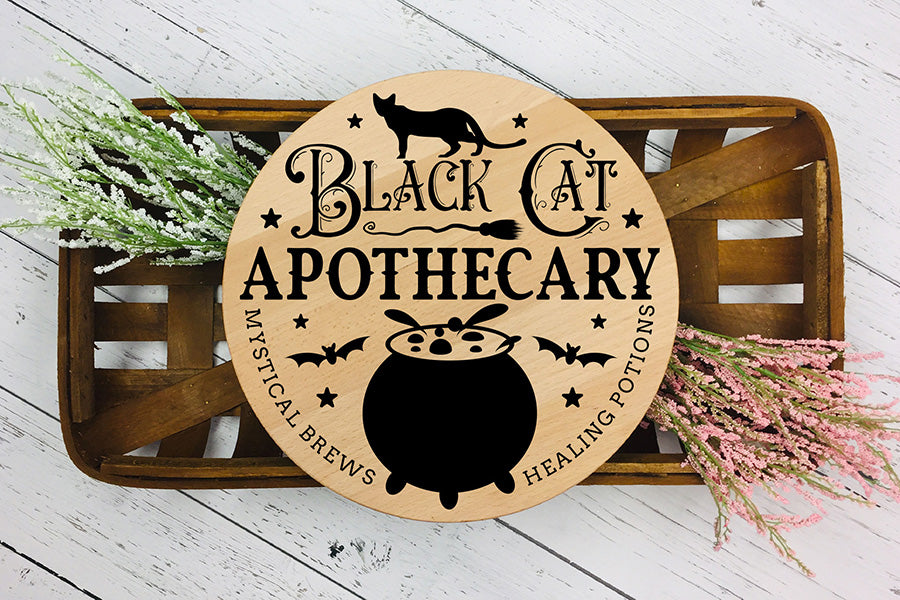 Halloween Round Sign SVG, Black Cat Apothecary SVG