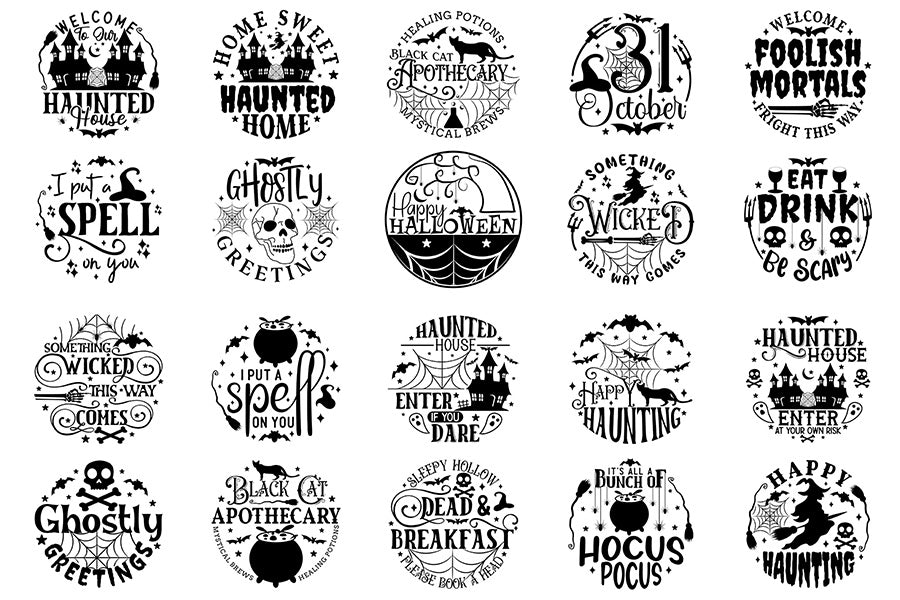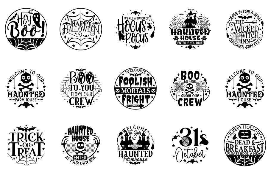 In the bundle, you will get 35 frightening designs which are perfect for Halloween craft projects. Each design features spooky things like witches & ghosts. These are great for making round signs, welcome signs, door signs, wall decals, home décor, farmhouse décor, door hangers and any DIY craft projects.
