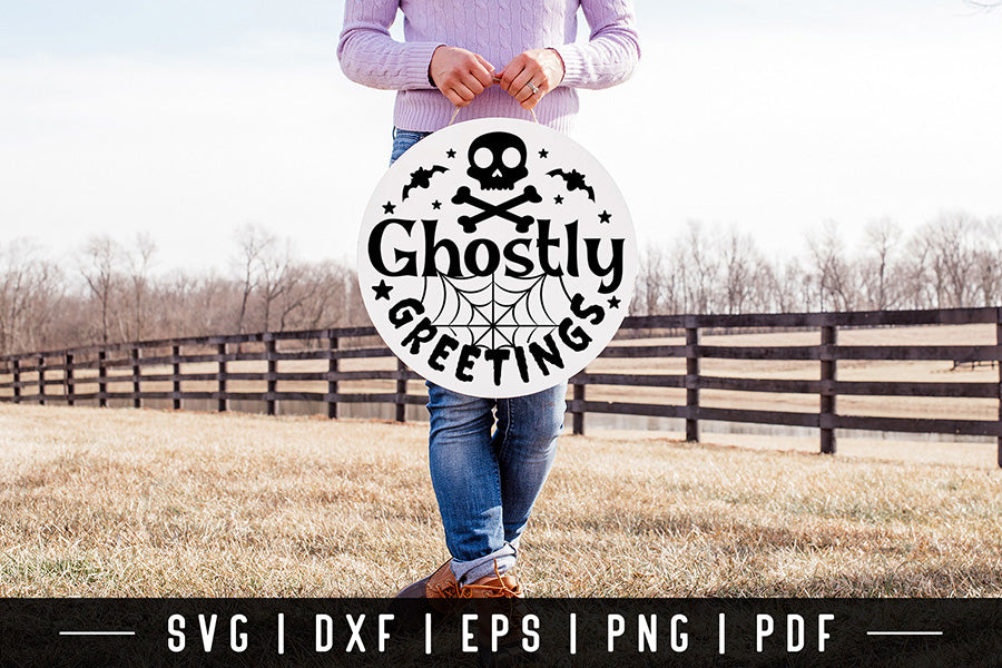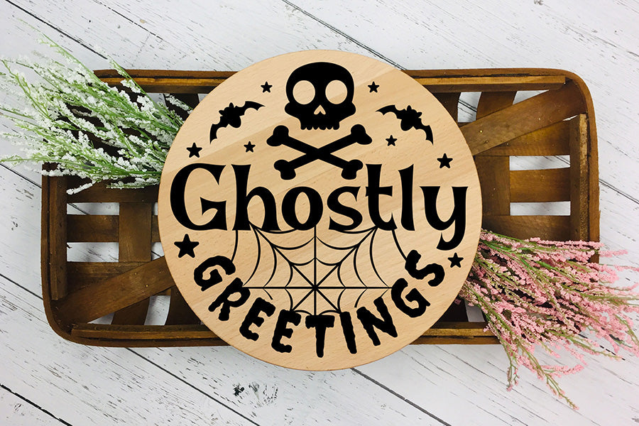 Halloween Round Sign SVG | Ghostly Greetings SVG