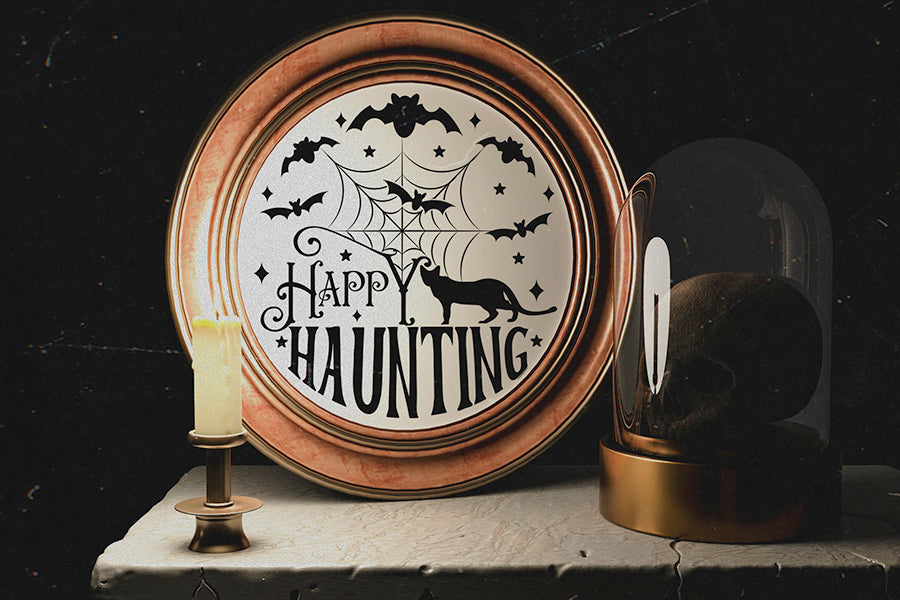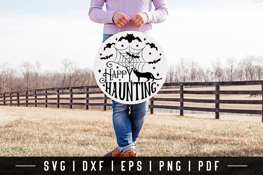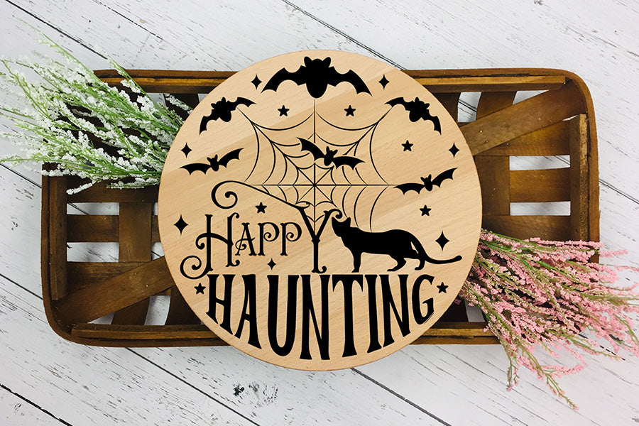 Halloween Round Sign SVG - Happy Hunting Cut File