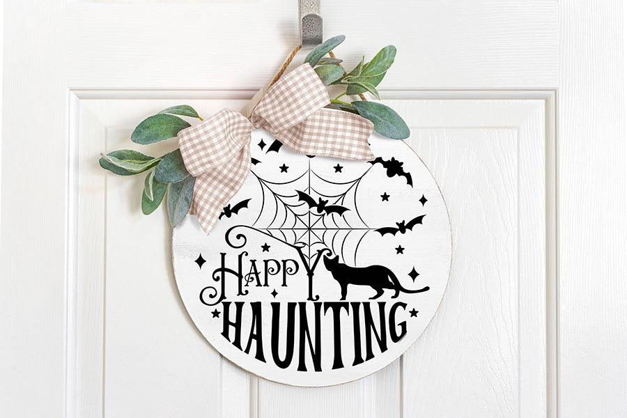 Get into the Halloween spirit with our captivating Halloween Round Sign SVG design. Perfect for spooky decorations, invitations, and more. Use it to create cute round signs, welcome signs, door signs, farmhouse signs, home signs, and more.