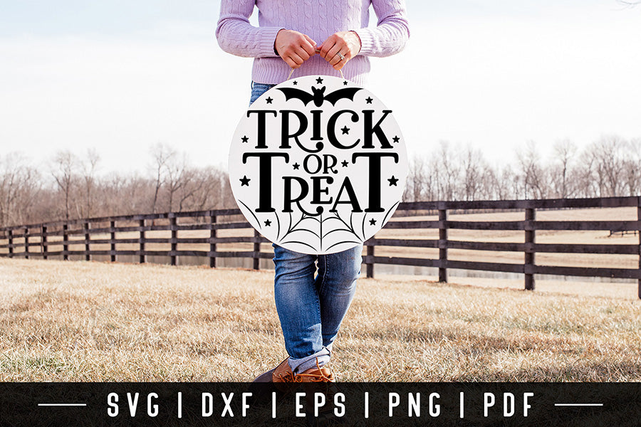 Halloween Round Sign SVG, Trick or Treat SVG