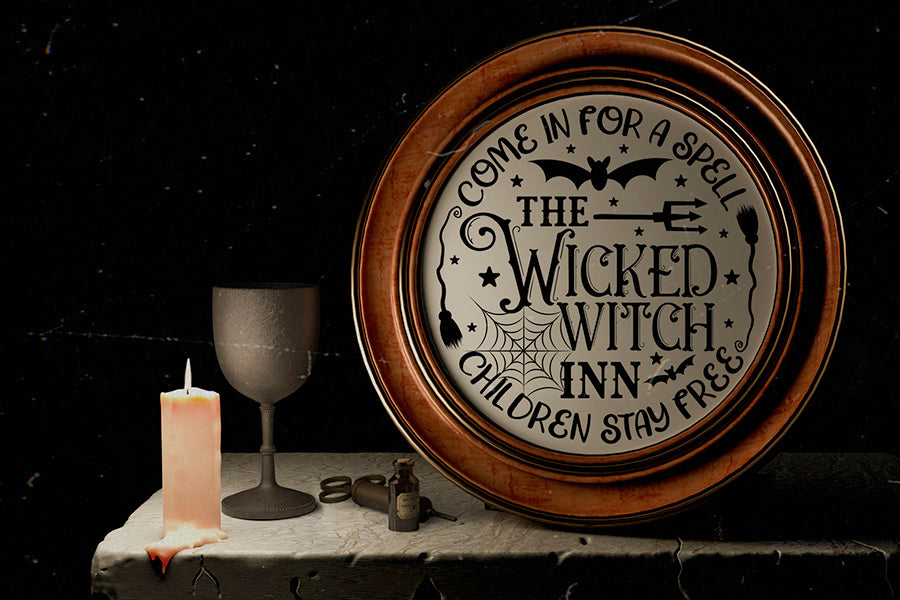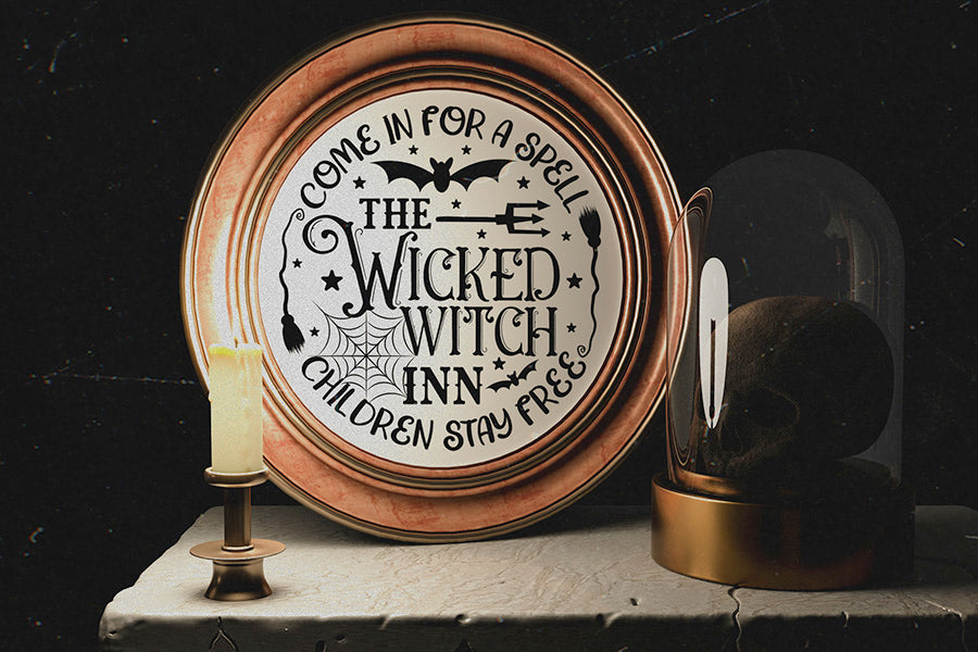 Halloween Round Sign SVG, Wicked Witch Inn Cut File