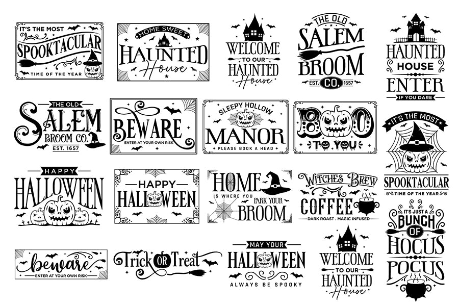 Elevate your seasonal crafts with our bewitching bundle of Halloween Sign SVGs. Featuring 35 frightening designs, perfect for crafts, and decorations. Use them for creating unique signs, welcome signs, farmhouse signs, home signs, and more.