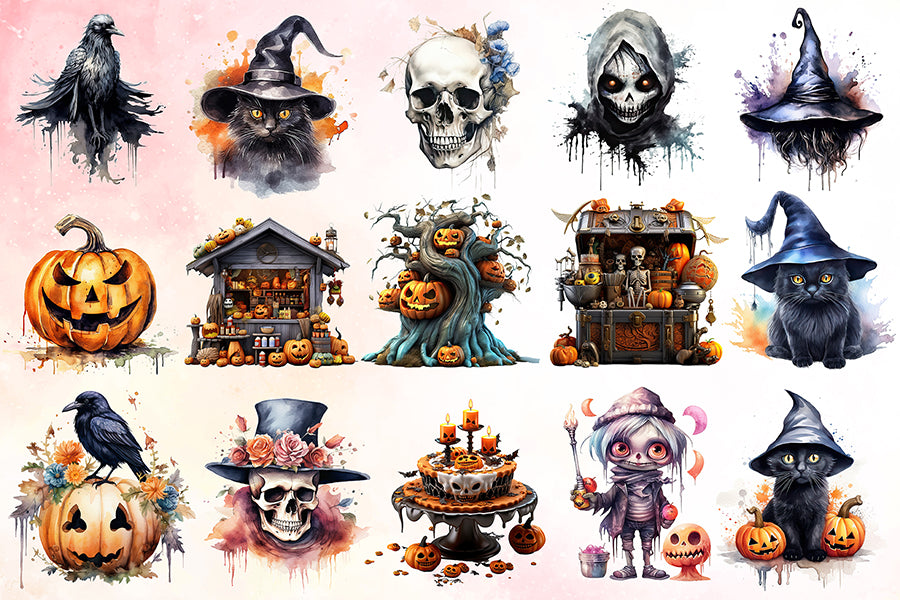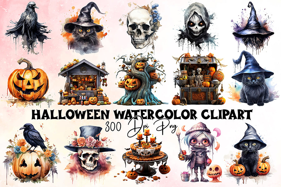 Halloween Watercolor Sublimation Clipart Bundle