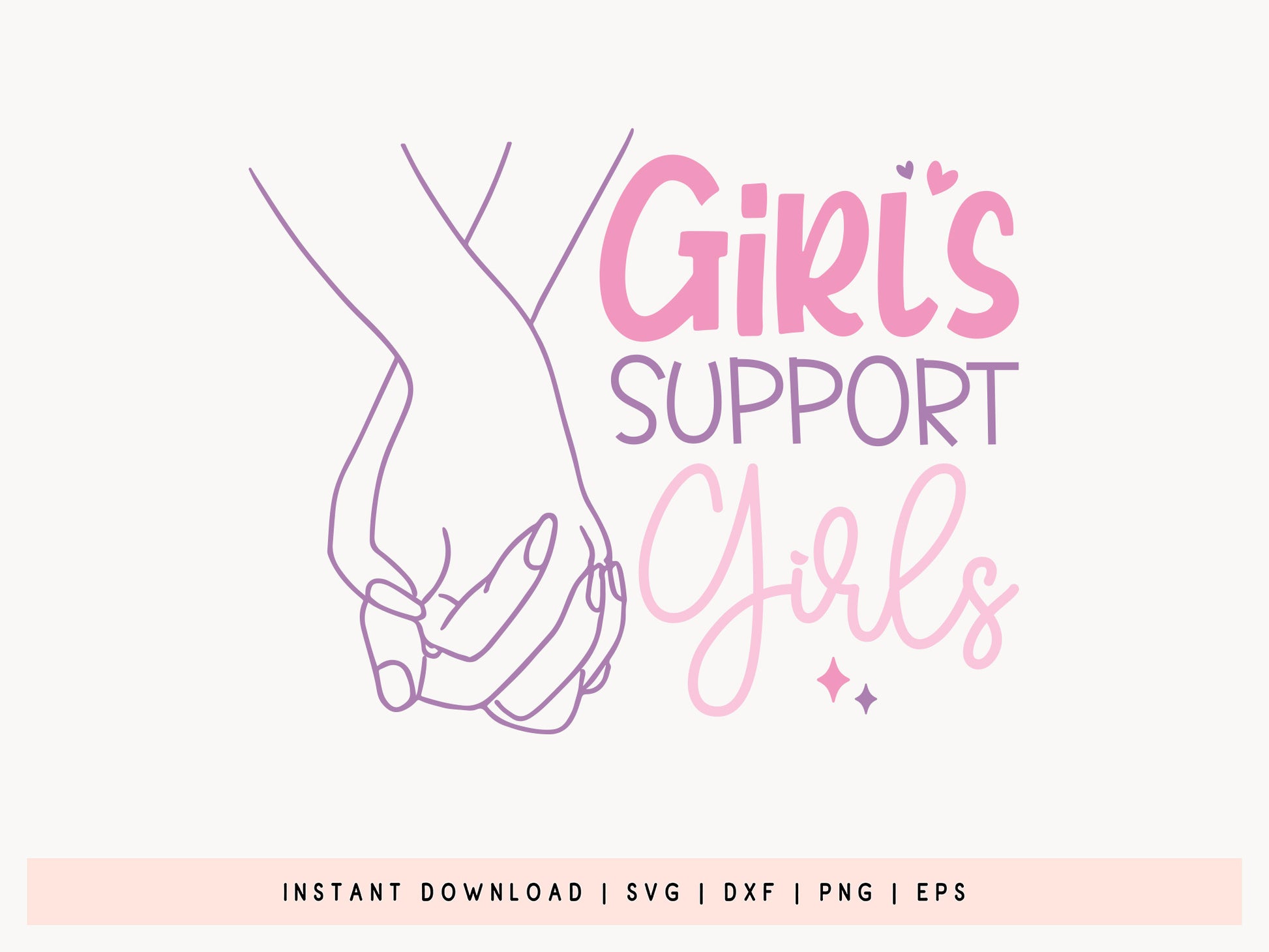 Browse the Hand-Lettered Girls Support Girls Design SVG! This beautifully crafted design includes SVG, DXF, PNG, and EPS formats, perfect for creating thoughtful and inspiring projects. If you're designing girl power shirts, motivational tote bags, or heartfelt girl power gifts, the versatile girl SVG design is a reminder of the strength and unity among women. The hand-lettered girl power SVG design adds a personal touch to any DIY project, making it ideal for t-shirts, mugs, sweatshirts, and more. Designed specially for Cricut, Silhouette, and other cutting machines/programs. This girl power SVG cut file ensures smooth and easy crafting. Celebrate sisterhood and empowerment with the vibrant "Girls Support Girls" Design SVG.