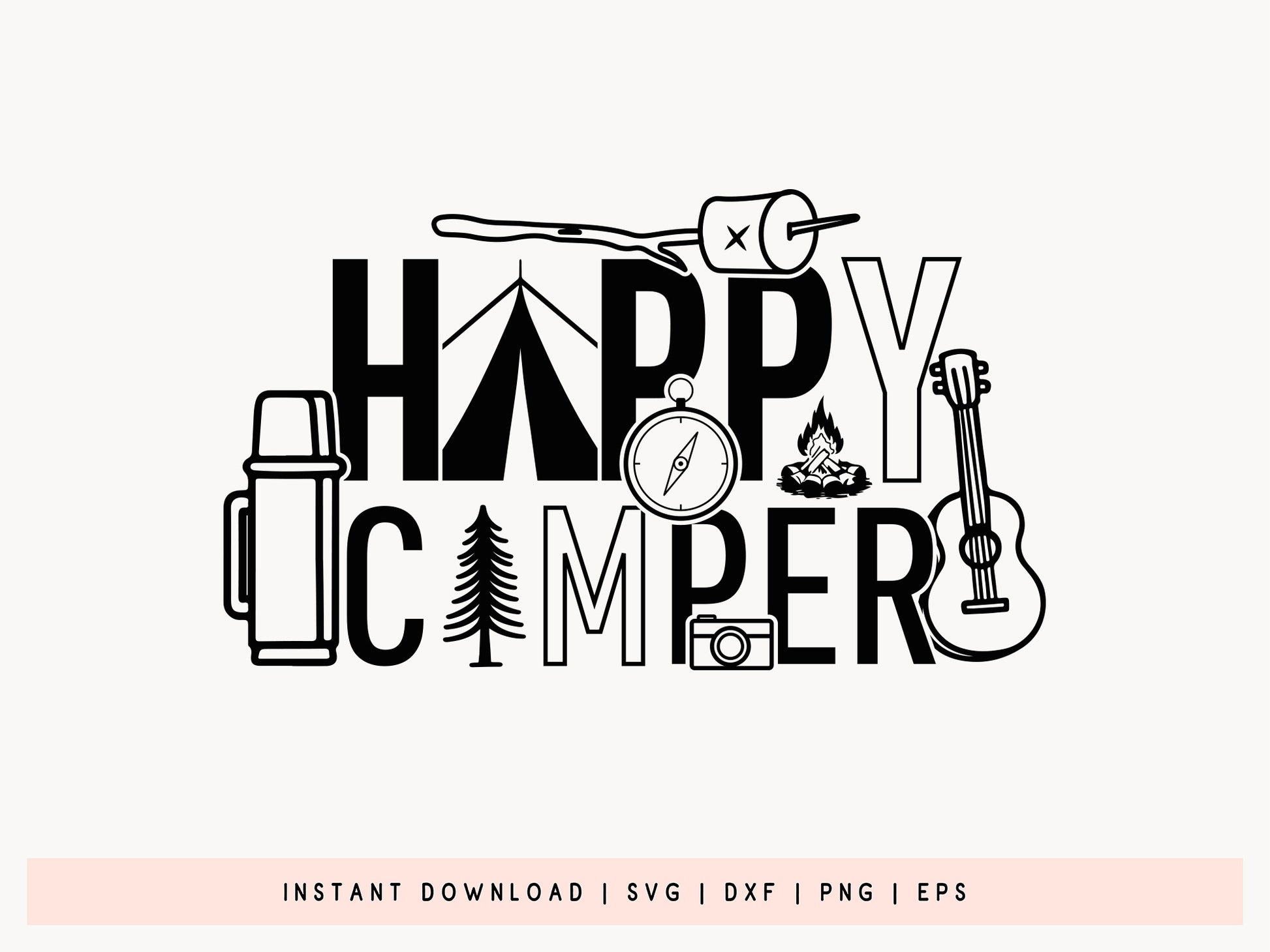 Have a look at our unique Happy Camper, Camping Saying SVG design! This lively camping SVG is perfect for creating t-shirts, mugs, tote bags, or those cozy campfire accessories. Whether you're out there making memories with friends or planning your next outdoor adventure, the camping SVG design adds just the right fun touch to your projects. It's compatible with Cricut, Silhouette, and other cutting machines, and comes in SVG, DXF, EPS, and PNG formats. Ideal for anyone who enjoys campfires, good food, and great company! Add a bit of personality to your outdoor SVG projects or create the ultimate funny camping SVG gifts for campers.