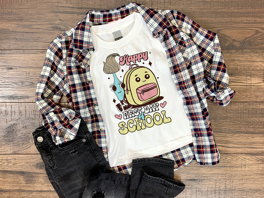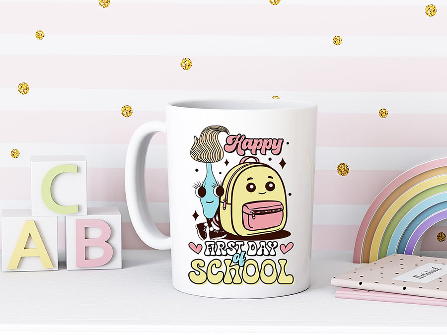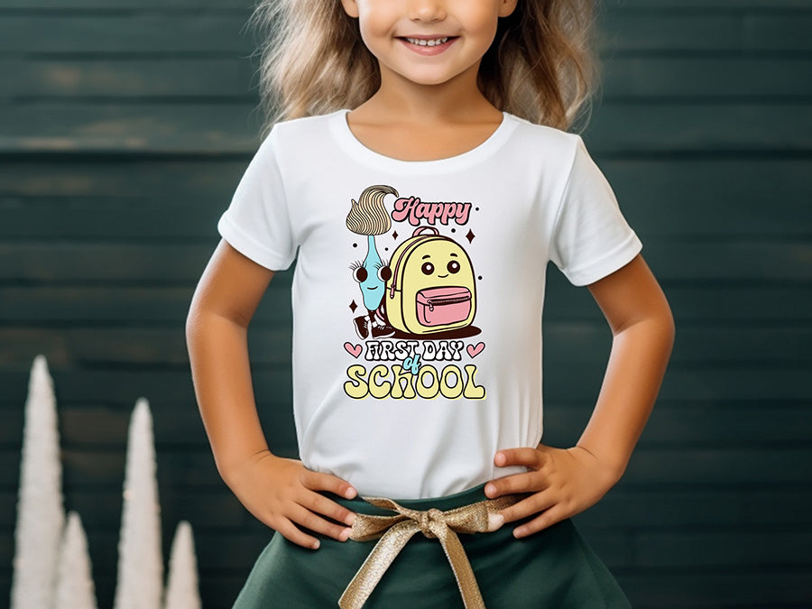 View our "Happy First Day of School - Groovy Back to School PNG" Sublimation design, which is a perfect way to kick off the new school year. With its vibrant colors and groovy-inspired graphics, this Happy First Day of School design is perfect for making our personalized gifts, apparel and other school supplies. Embrace the new school year with style using this Groovy Back to School PNG design. You can print a variety of physical products such as t-shirts, mugs, tote bags and much more, and sell the products you print. Get yours today and make personalized items for students and teachers!