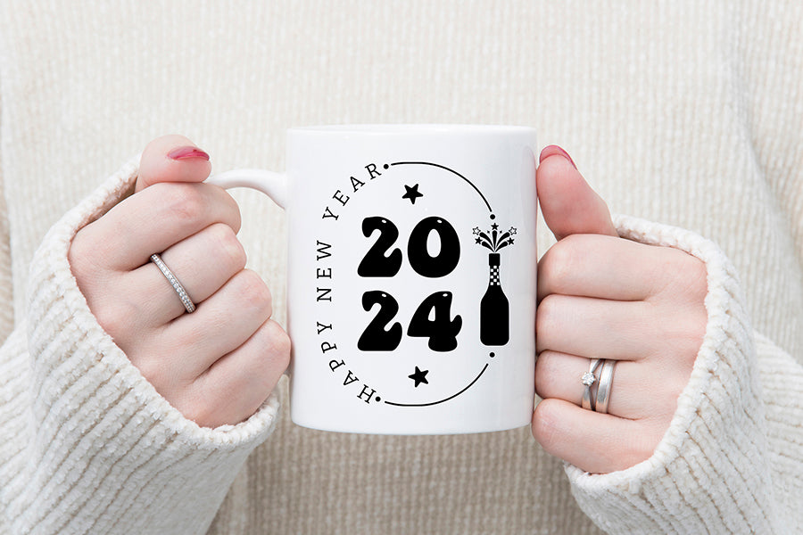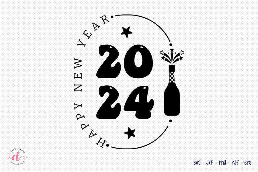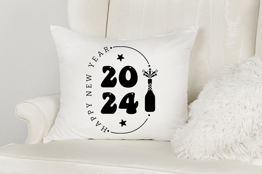 Make creative New Year's Eve crafts and projects for celebrating the New Year 2024. This Happy New Year 2024 SVG design is ideal for New Year's Eve shirts and outfits. With this design you can make New Year's Eve t-shirts, mugs, tote bags, cards, hoodies, pillows, and much more with this unique graphic.