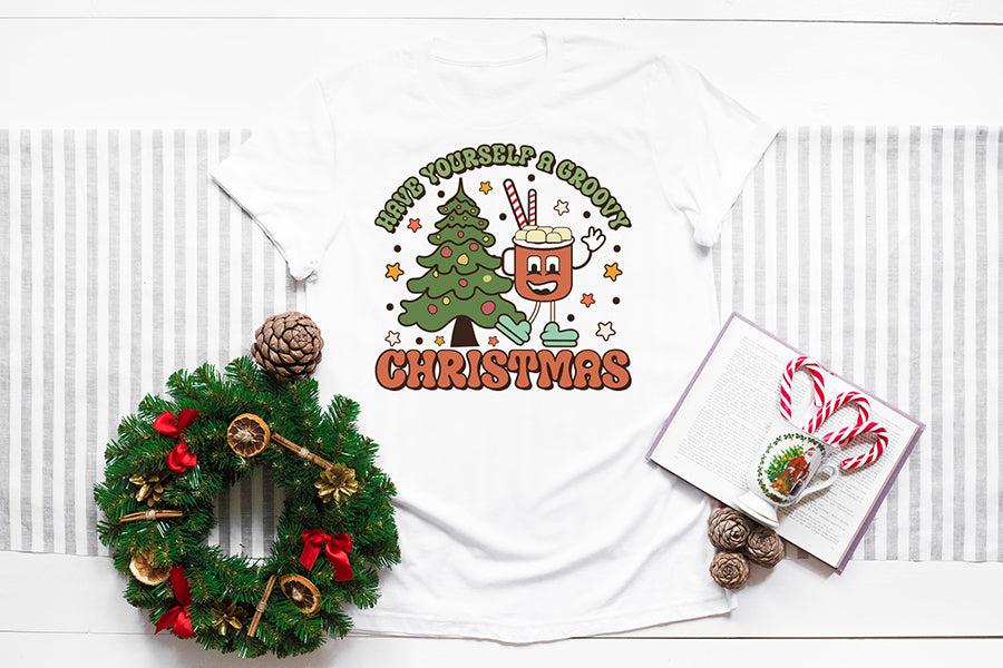 Groovy Christmas Sublimation design. This vibrant design is perfect for multiple creative projects: t-shirts, mugs, hoodies, cards, tote bags, pillows, and more!