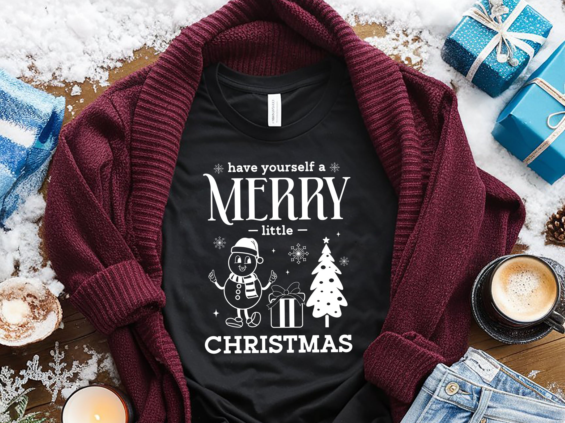 Get the elegant "Have Yourself A Merry Little Christmas - Snowman SVG File" that adds a heartwarming and festive vibe to your holiday crafts. Featuring a delightful snowman, a Christmas tree, snowflakes, and a festive gift box, this SVG is ideal for creating personalized home decor, holiday cards, or gifts. Perfectly compatible with Cricut, Silhouette, and other cutting machines, the ""Have Yourself A Merry Little Christmas" design allows you to craft unique holiday items like ornaments, mugs, or t-shirts with ease. Spread the holiday cheer with this charming Snowman SVG File and make your Christmas crafting extra special and joyful this season! Explore now.
