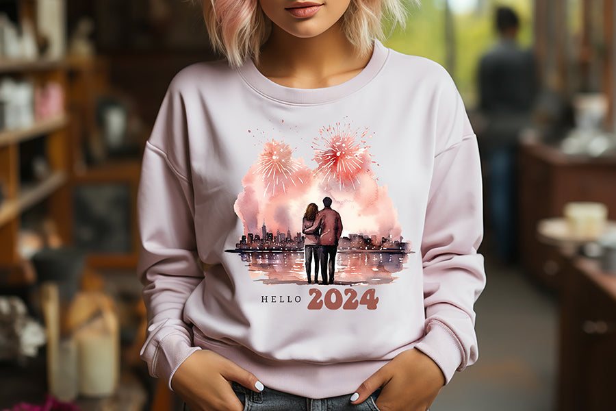 Make memorable new year projects and gifts using this adorable Hello 2024 New Year Sublimation design. Perfect for sublime New Year T Shirt. You can also use the design for new year's eve sweathers, mugs, hoodies, tote bags, pillows, and much more!