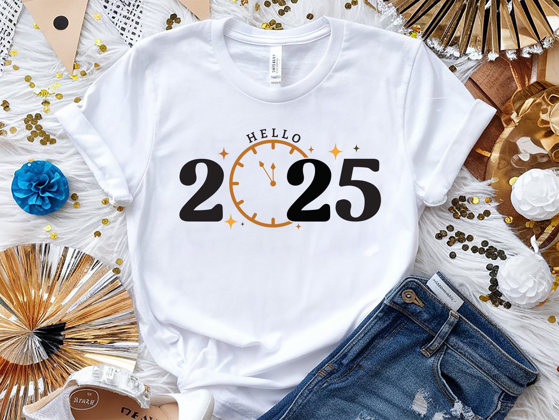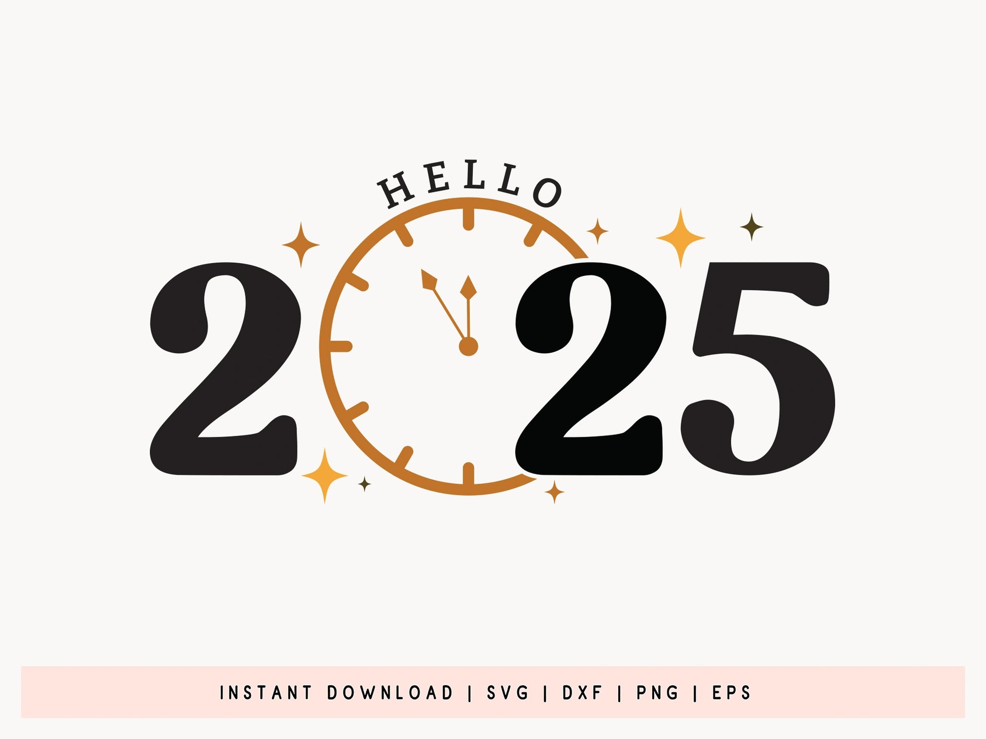 Explore our high-resolution "Hello 2025 - New Year SVG File," a welcoming design perfect for creating festive New Year’s crafts such as t-shirts, mugs, party decorations, banners, pillows, hoodies, sweaters, cards, and more. Featuring whimsical typography with festive graphics, this New Year SVG file adds a fresh and positive vibe to all your 2025 celebrations. Best for Cricut, Silhouette, and other cutting machines, this versatile Hello 2025 design is easy to customize, making it great for unique gifts, keepsakes, and decorations. Greet the new year with excitement and creativity! Don't any longer - buy now.