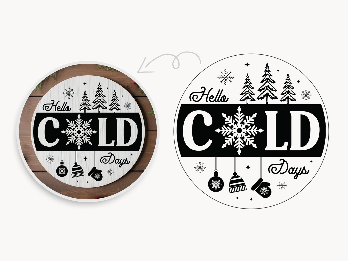 Take a look at our "Hello Cold Days - Winter Sign SVG Cut File," a unique addition for creating rustic decor that captures the cozy vibes of the colder months. It includes the phrase "Hello Cold Days" surrounded by pine trees, snowflakes, and winter-themed icons that brings a warm and inviting feel to DIY projects like door signs, wall art, and seasonal decor. This Winter Sign SVG cut file is compatible with popular cutting machines, making it easy to add a personalized winter touch to your space or make a thoughtful gift. Embrace the frosty season in style with this versatile and cozy SVG! Shop now.