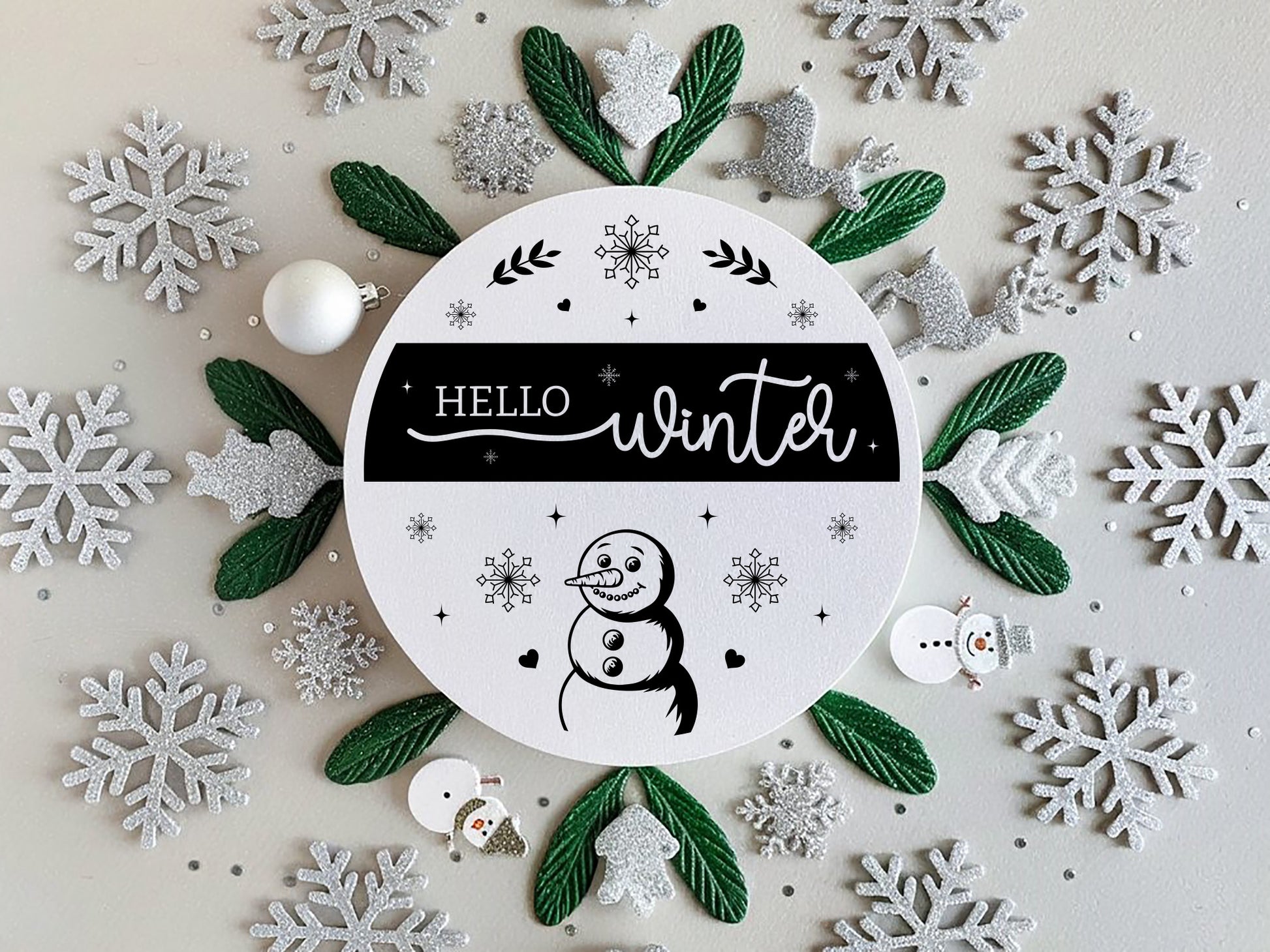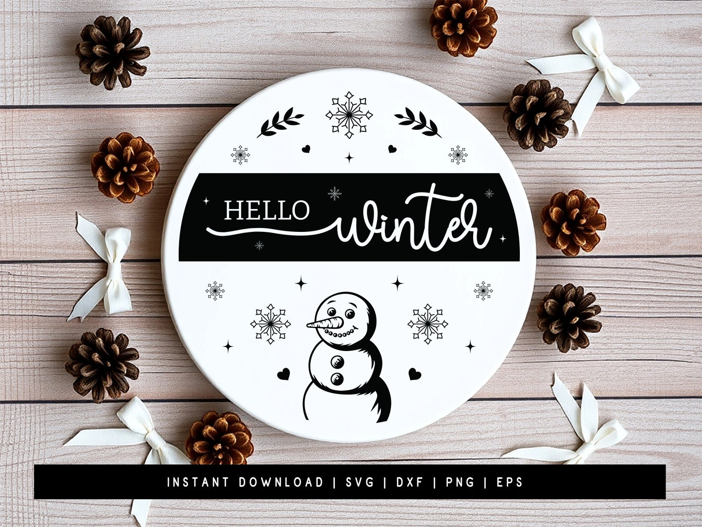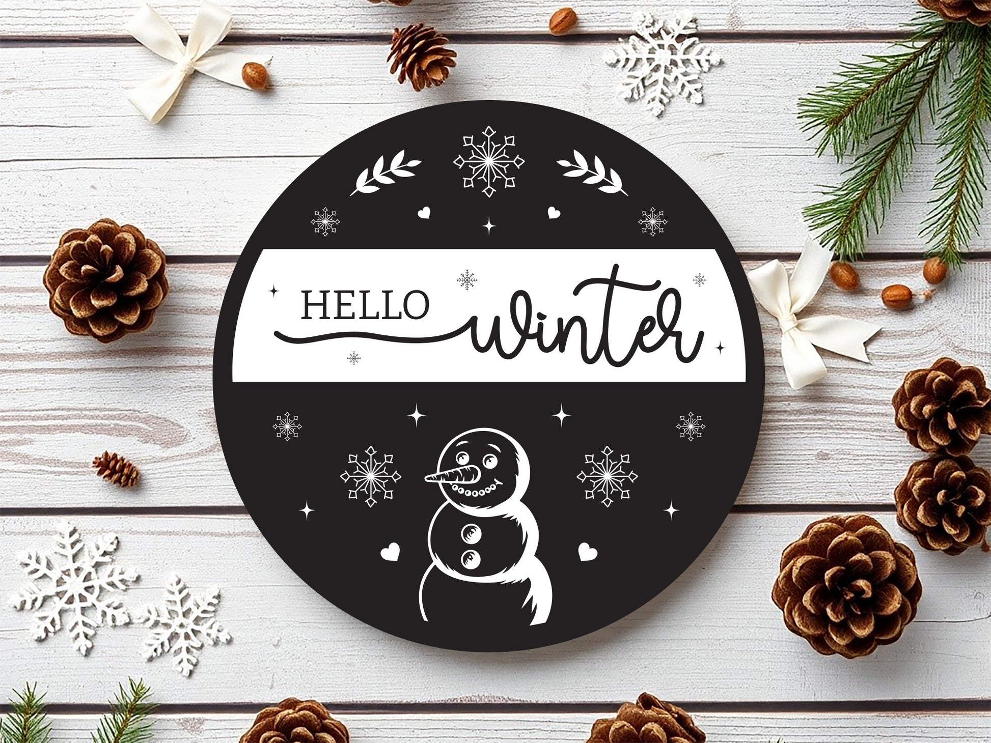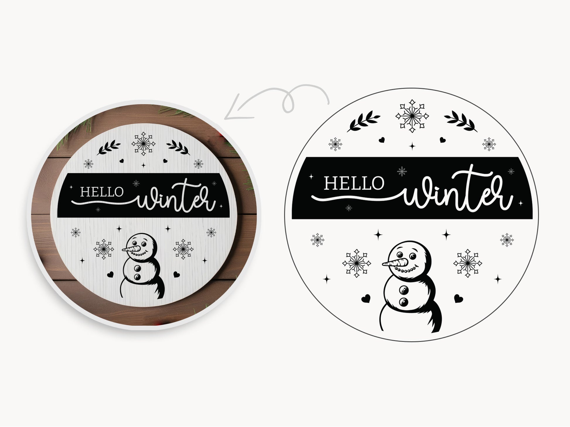 Introducing our Hello Winter Round Sign SVG Design, a unique SVG file that adds warmth to your winter decor. Featuring a lovely circular design and whimsical typography, this Winter Round Sign SVG design is perfect for creating wood signs, wall art, door hangers, or holiday wreath accents. It is compatible with Cricut, Silhouette, and other cutting machines. Capture the essence of the chilly season by crafting a creative piece that welcomes guests with style and charm. Whether for a cozy cabin or your front door, the "Hello Winter" SVG Design brings a heartfelt, wintry vibe to any space. Grab now!