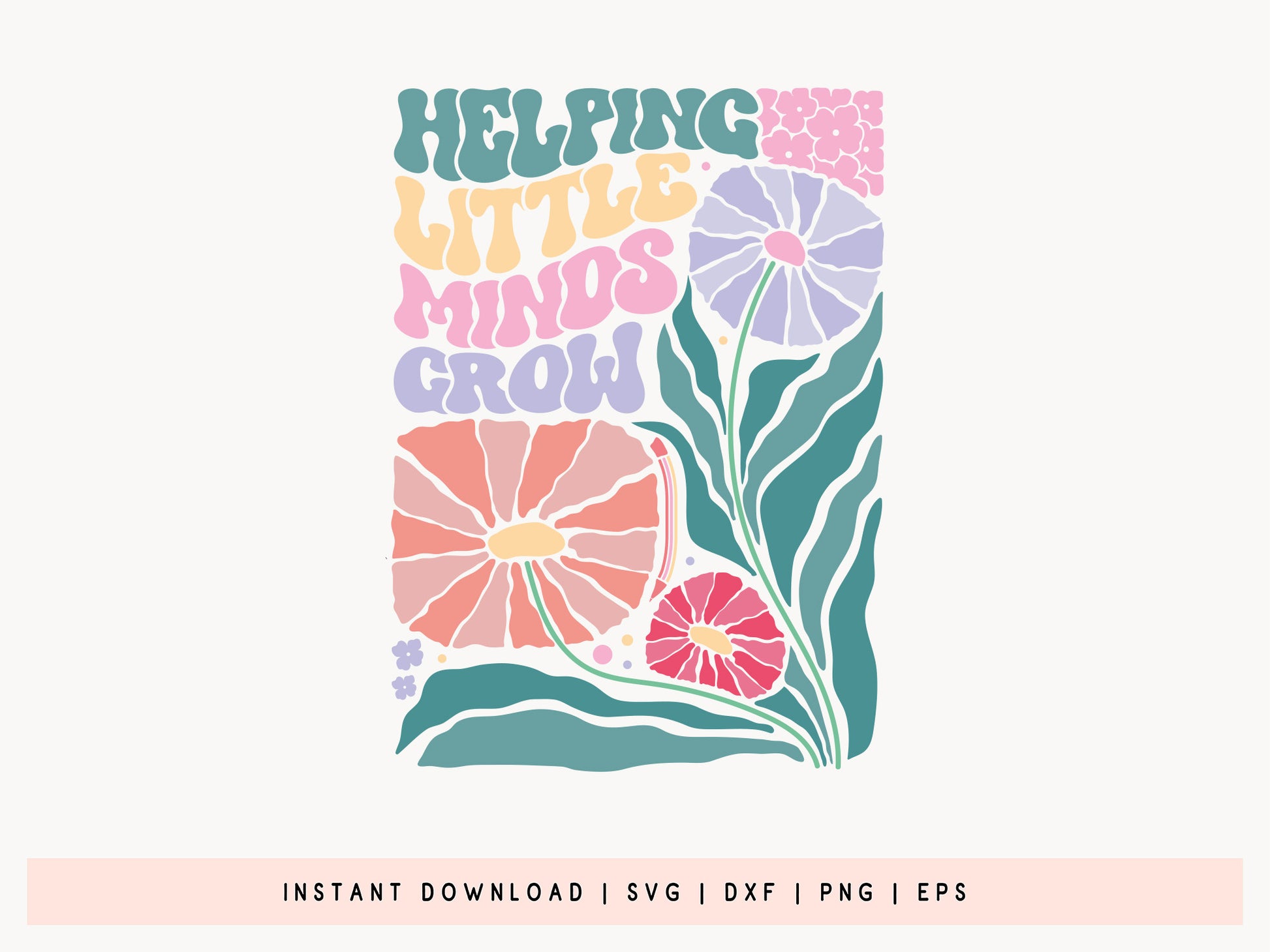 Helping Little Minds Grow, Cute Teacher Boho Floral SVG