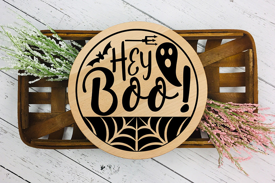 Hey Boo Cut File, Halloween Round Sign SVG