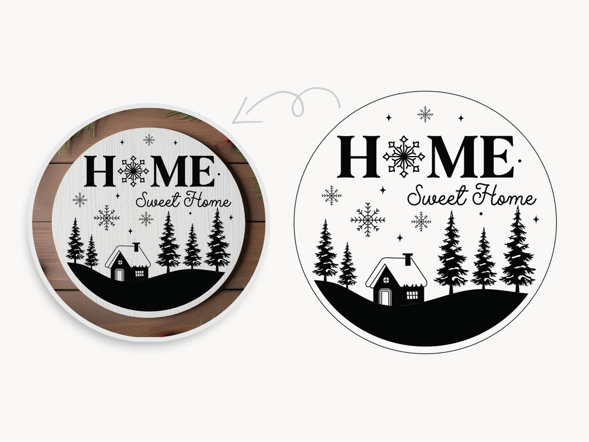 Explore our "Home Sweet Home - Round Winter Sign SVG," a creative design that captures the essence of home during the chilly season, making it perfect for creating inviting wall art, wooden signs, or seasonal wreaths. The elegant typography and charming elements evoke a sense of nostalgia and coziness, ideal for any farmhouse or rustic theme. Ideal for Cricut, Silhouette, Vinyl, and other cutting machines, this Round Winter Sign SVG file allows for effortless crafting. Whether you’re decorating for the holidays or simply embracing the winter season, the "Home Sweet Home" design is a must-have for adding a heartfelt touch to your home. Take it today!