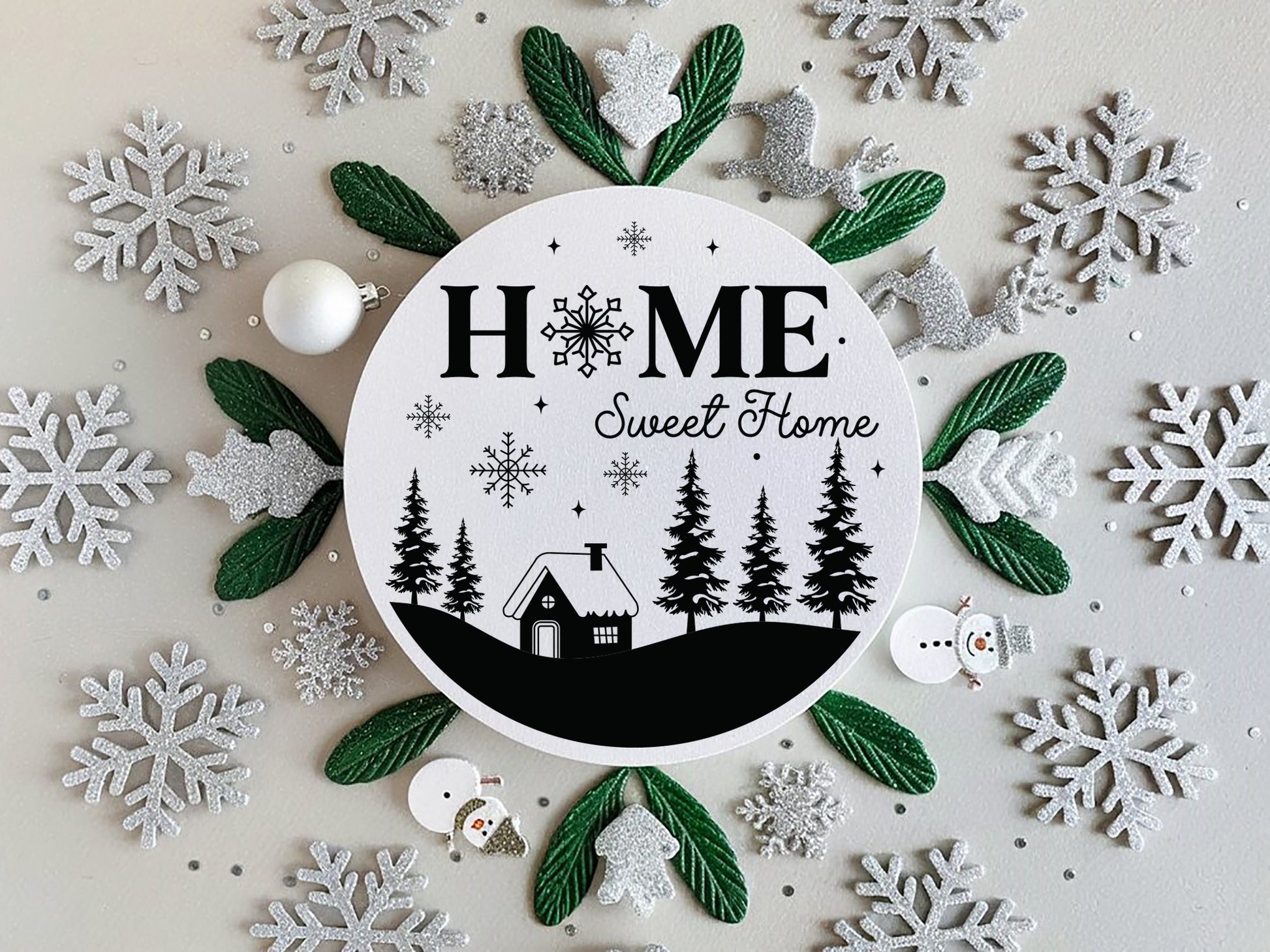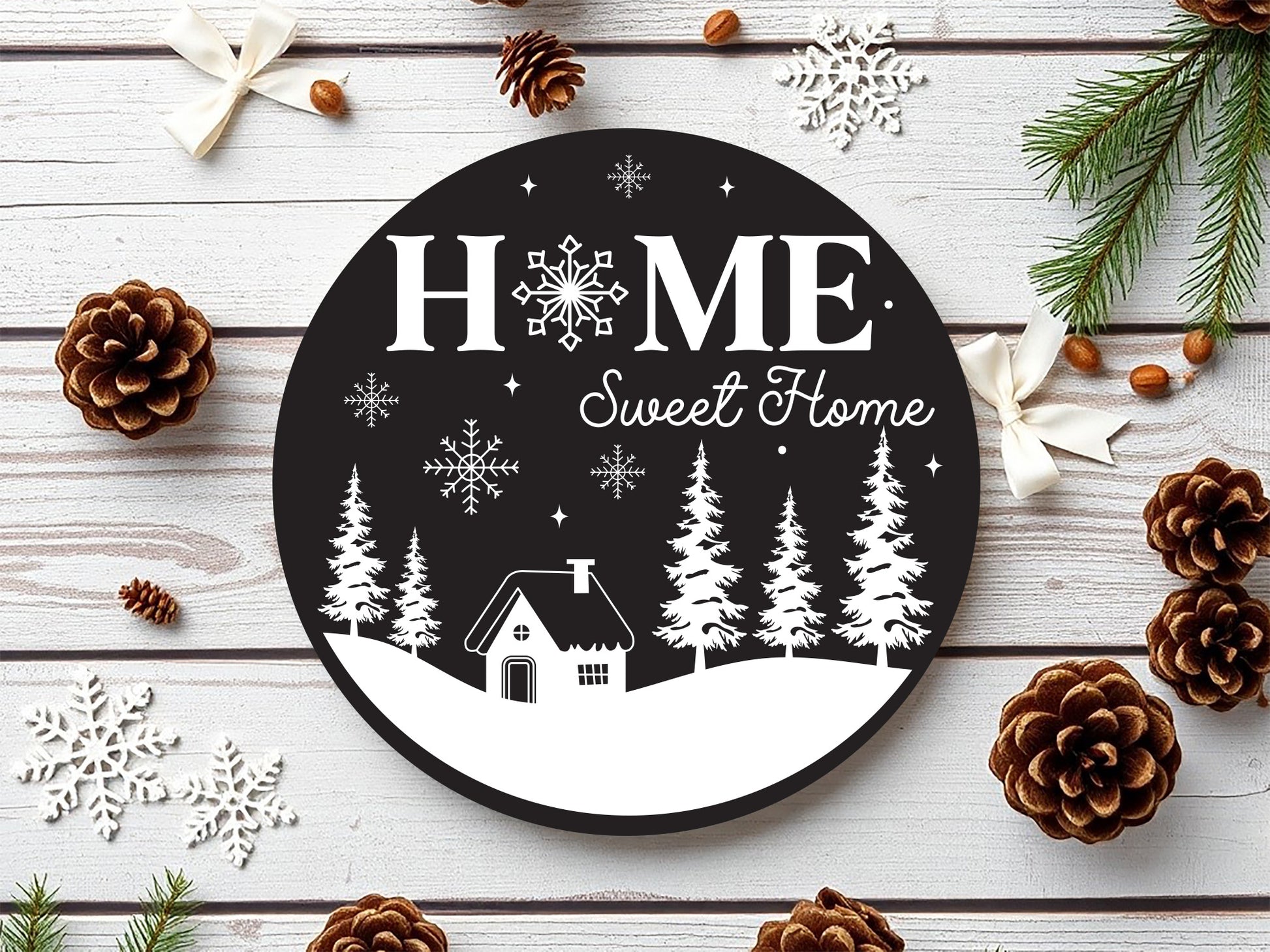 Home Sweet Home - Round Winter Sign SVG