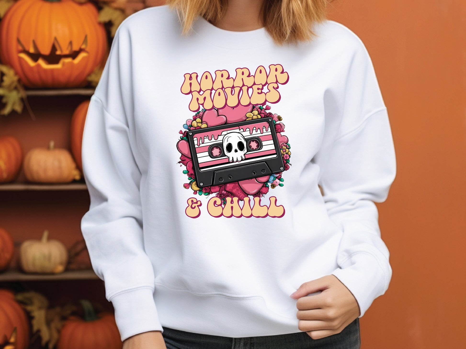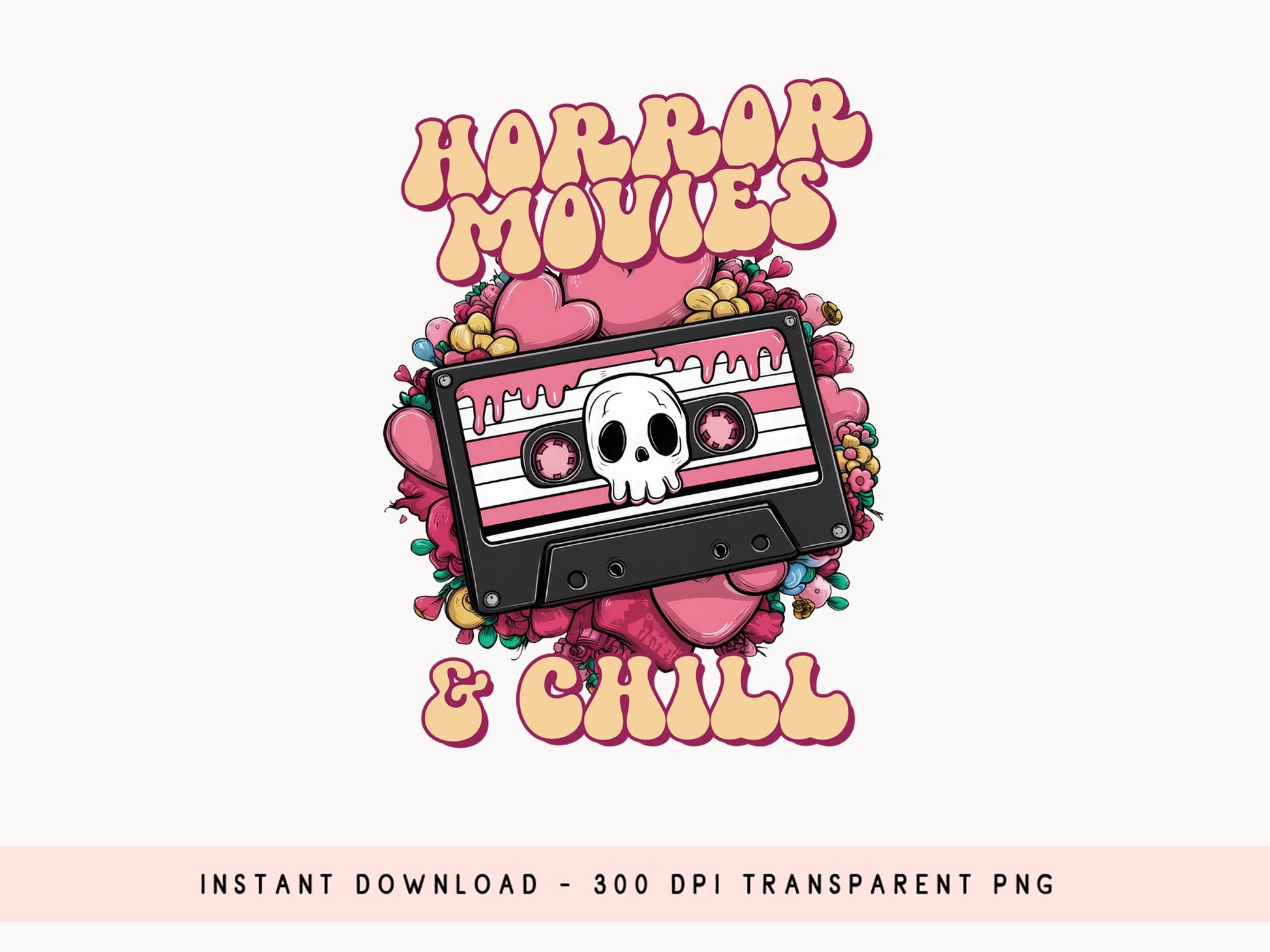 Horror Movies & Chill - Pink Halloween Sublimation Png