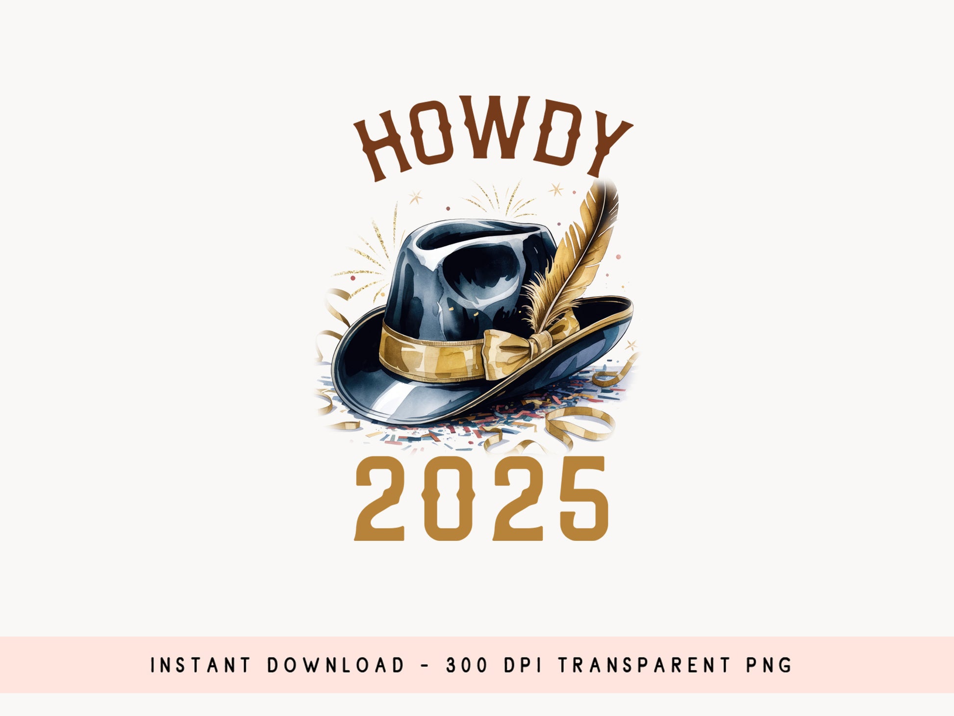 Download the "Howdy 2025 - New Year Sublimation Design PNG" design, a fun and unique design that adds a cheerful, Western-inspired vibe to your New Year’s projects. Suitable for t-shirts, mugs, hoodies, party favors, and more. This New Year Sublimation Design PNG features a cowboy hat adorned with a feather and a bow surrounded by confetti. Its high-resolution PNG file is ideal for eye-catching sublimation creations. Whether you're creating heartfelt gifts for friends, family, and loved ones, this design is a great way to welcome 2025. Say "Howdy 2025" to new beginnings and let this design kick off the year with fun! View now.