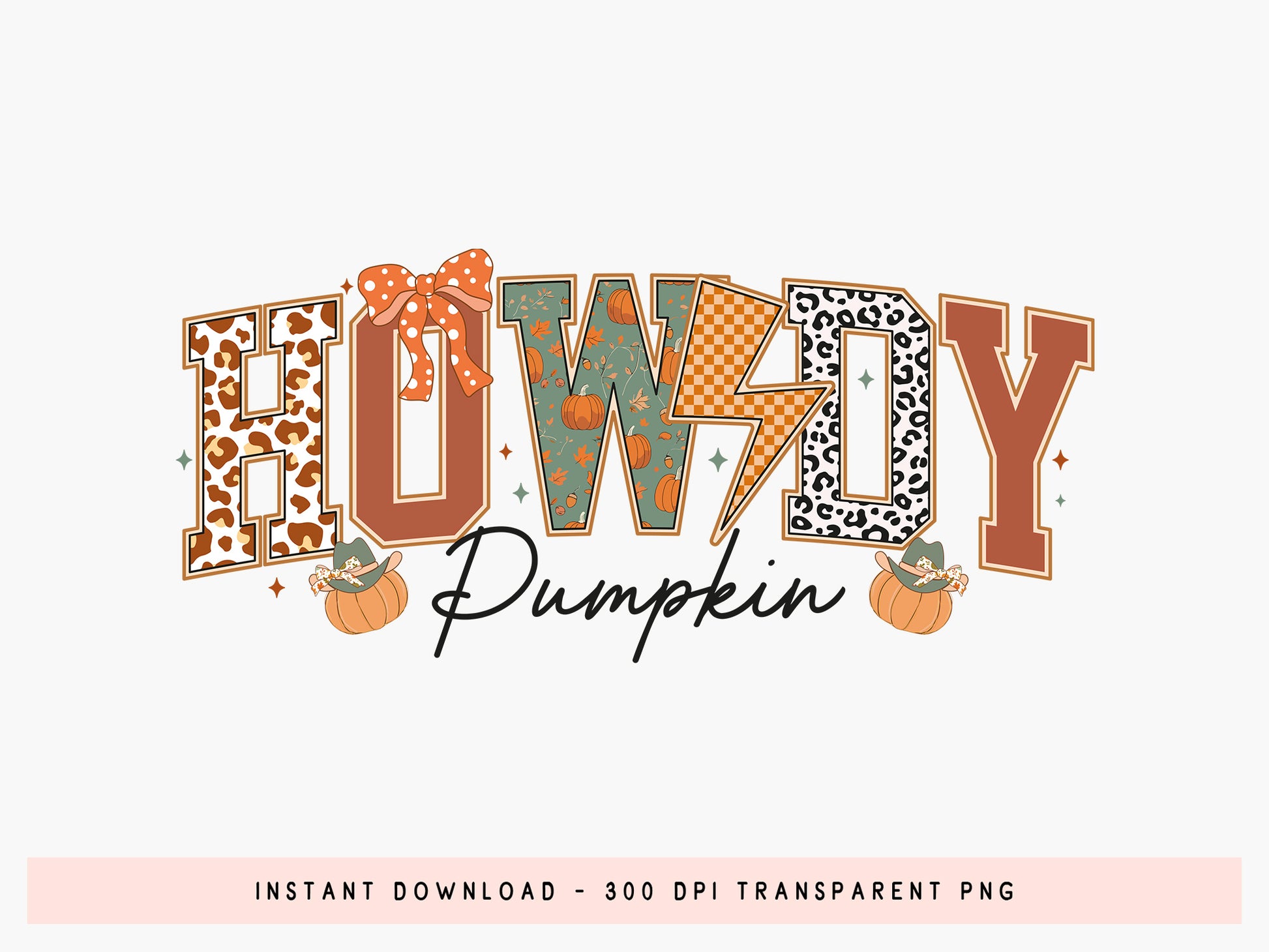 Discover hand-drawn Howdy Pumpkin - Coquette Fall Quote Sublimation design. This artwork is just what you need for cozy and stylish seasonal projects. It's perfect for everything from apparel to home décor and seasonal gifts.