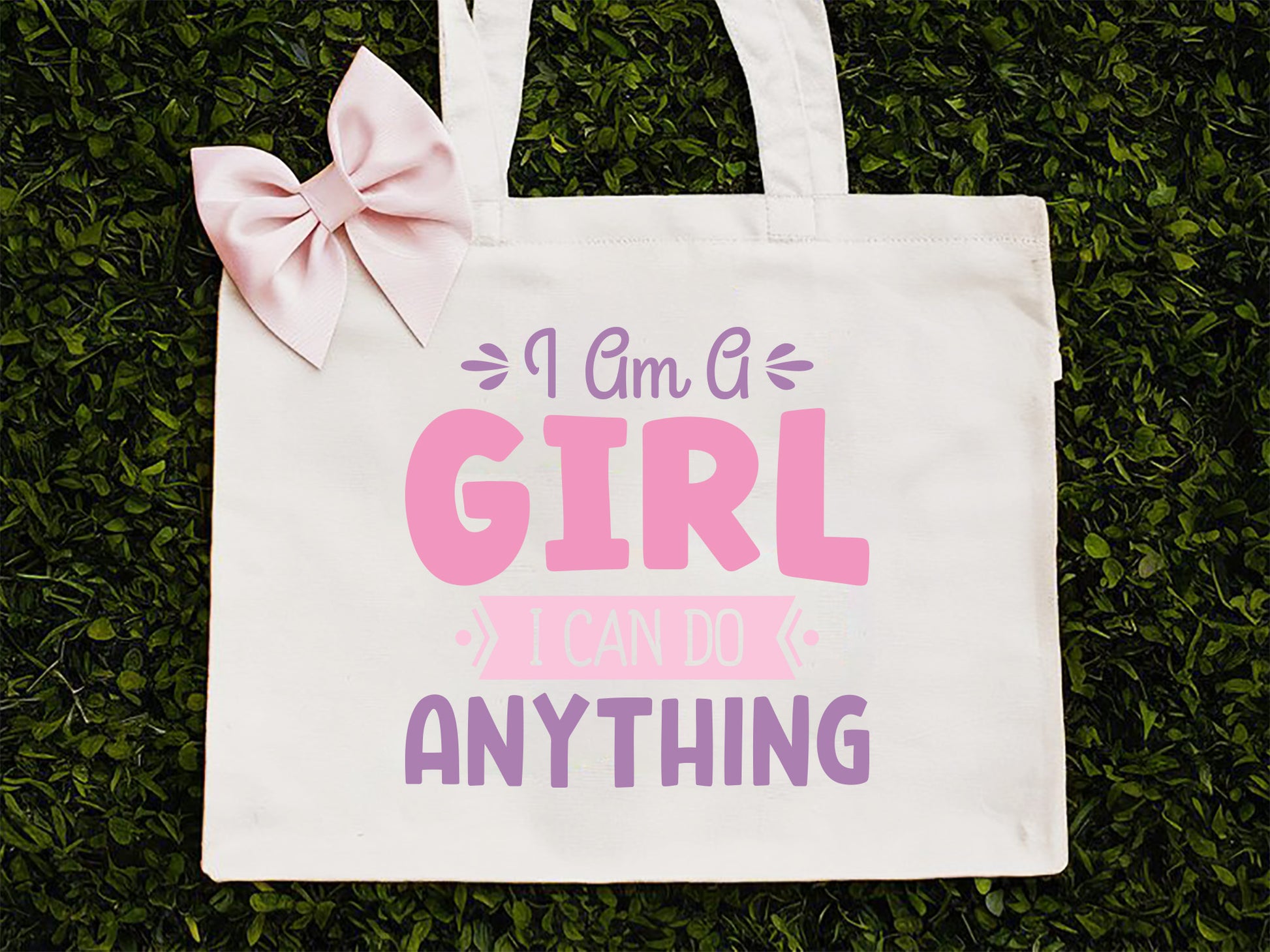Please see our I Am A Girl I Can Do Anything design in SVG, DXF, EPS, and PNG formats. This empowering design is perfect for celebrating the limitless potential of girls everywhere. Whether you're crafting an inspiring girl power shirt, adorable tote bags, motivational wall art, or unique gifts, this versatile girl SVG design is the perfect choice. The creative Girl Power SVG design features unique typography, playful lettering, and an inspirational quote that encourages girls to chase their dreams and achieve anything they set their minds to. Made for Cricut, Silhouette, and other cutting machines, this girl power cut file ensures easy crafting for all your DIY projects.