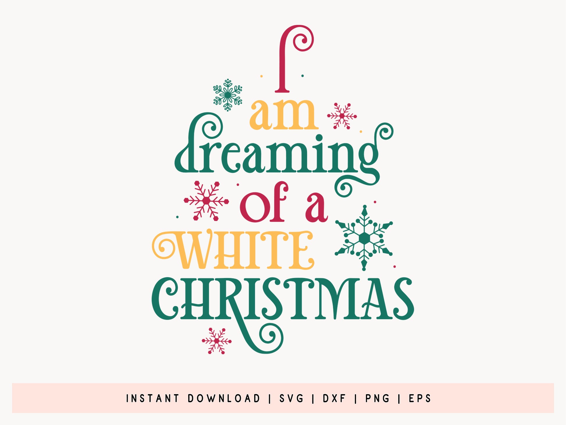 View the I Am Dreaming Of A White Christmas SVG Cut File. This fully customizable design is perfect for creating festive decor, cozy apparel, or heartwarming holiday gifts. Perfect for Cricut, Silhouette, or other cutting machines to create t-shirts, mugs, tote bags, greeting cards, and more. This high resolution Christmas SVG Cut File is versatile and easy to use with vinyl, Cricut, Silhouette, or fabric crafts. Make stunning wall art, pillow covers, or personalized ornaments that reflect your love for a snowy, magical Christmas. Whether you're creating gifts for loved ones, the "I Am Dreaming Of A White Christmas" design adds a touch of holiday magic to every project. Show now and start crafting your winter wonderland!