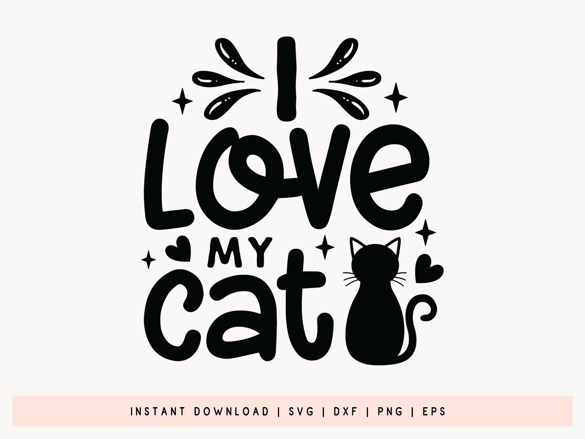 Discover the hand lettered I Love My Cat SVG Cut File. It's truly the best design for any cat enthusiast. This creative Cat SVG Cut File is perfect for making cute shirts, mugs, tote bags, wall art, and so much more. Whether you're crafting something special for yourself or creating thoughtful gifts for your fellow cat lovers, the cut file adds a touch of charm and personality to every single project. Available in SVG, DXF, PNG, and EPS formats, this Cat SVG Cut File works beautifully with Cricut, Silhouette, and other cutting machines. With its hand-lettered style and customizable features, our Cat SVG Cut File is a versatile addition to add to your crafting collection.