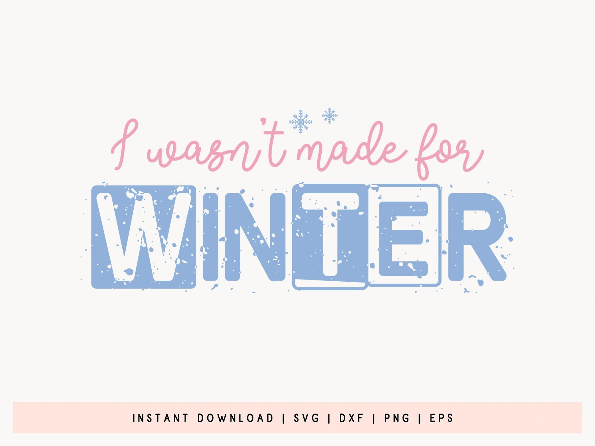 Presenting our "I Wasn't Made for Winter SVG Design," a playful and relatable quote for your upcoming winter crafts or designing projects! This creative SVG features elegant typography, making it perfect for creating trendy apparel, cozy home decor, or humorous gifts. Ideal for t-shirts, sweatshirts, mugs, and more, the "I Wasn't Made for Winter" design lets you express your winter woes with a touch of humor. Compatible with most craft cutting machines, it offers endless possibilities for your crafting projects. Whether you're layering up for the season or just dreaming of warmer days, this Winter SVG Design is a great way to showcase your personality. Shop now.