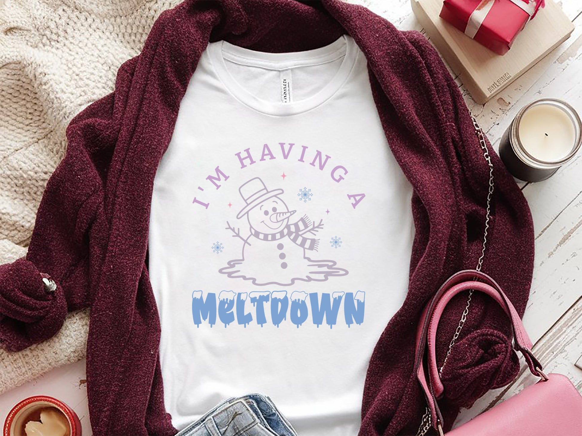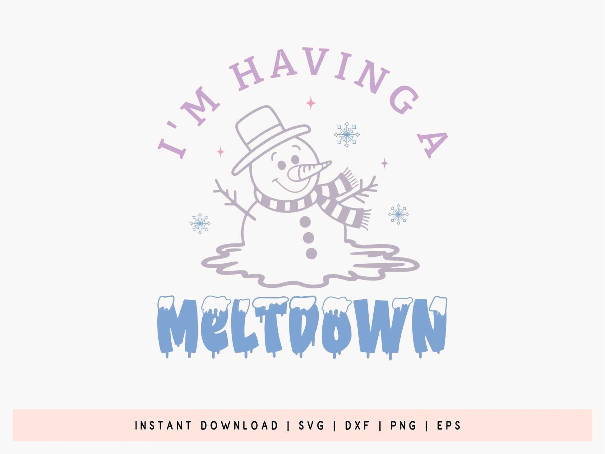 Grab the handcrafted "I'm Having A Meltdown - Snowman SVG Design," ideal for adding a fun and humorous touch to your winter crafts! This playful "I'm Having A Meltdown" design features a snowman paired with the witty phrase, and snowflakes, making it perfect for creating unique t-shirts, mugs, totes, holiday decor, or personalized gifts. Whether you're crafting for a seasonal project or adding some lightheartedness to your holiday items, the Snowman SVG Design works with popular cutting machines like Cricut and Silhouette. Bring a little frosty fun to your creations with this quirky and relatable snowman design! Buy it now.