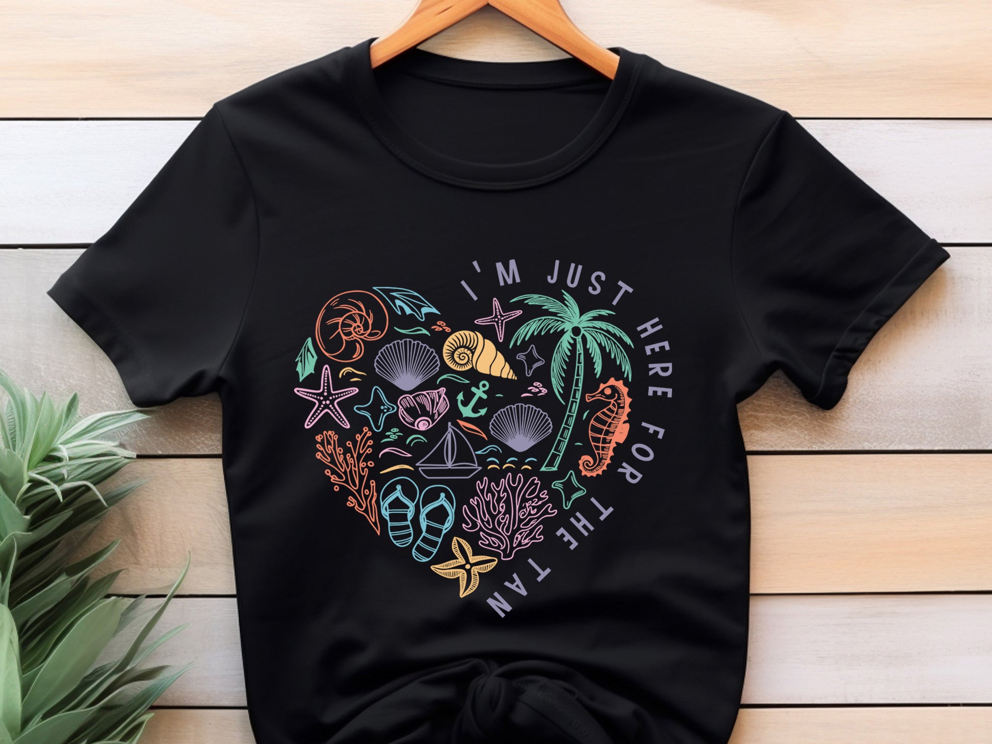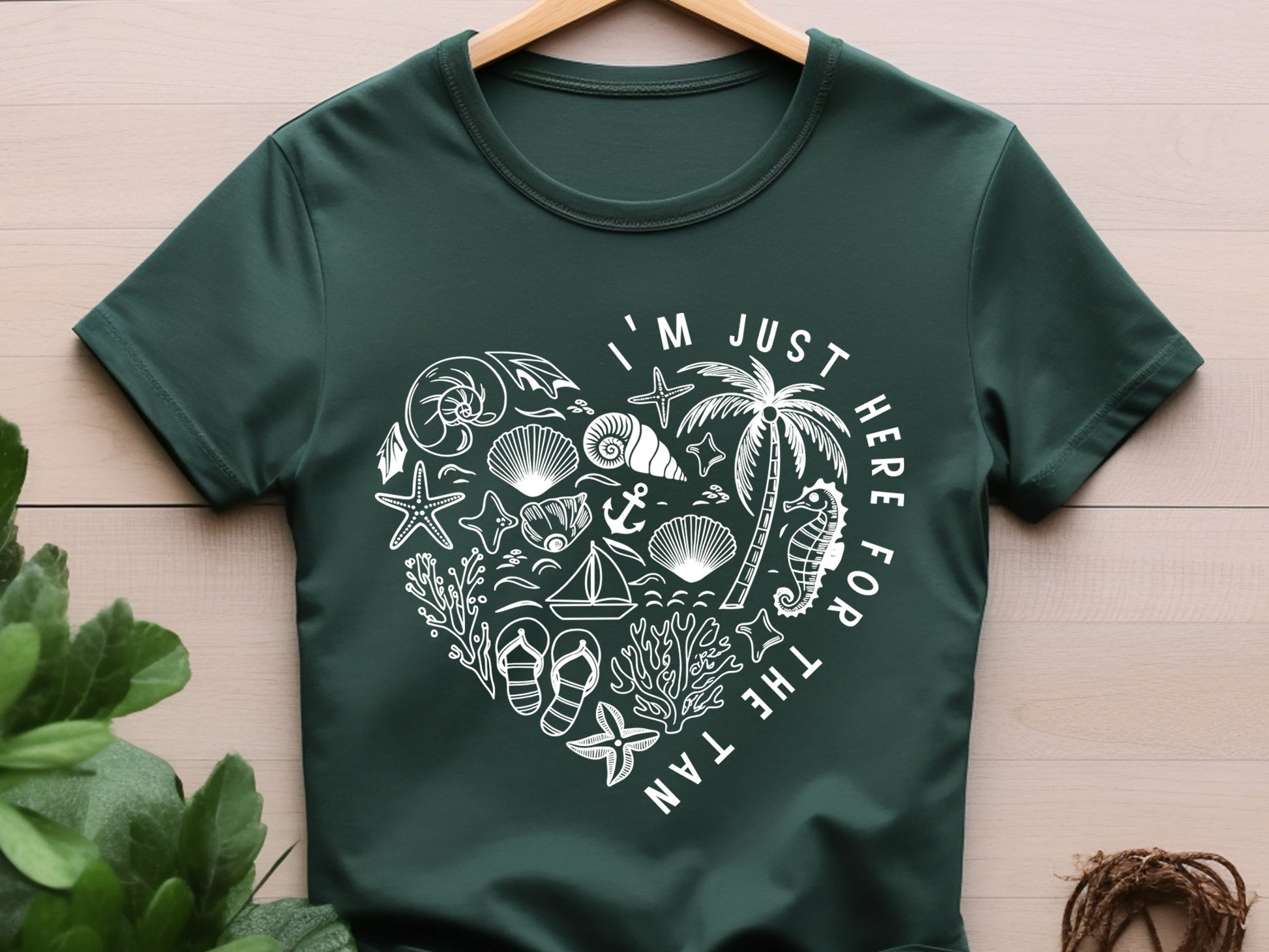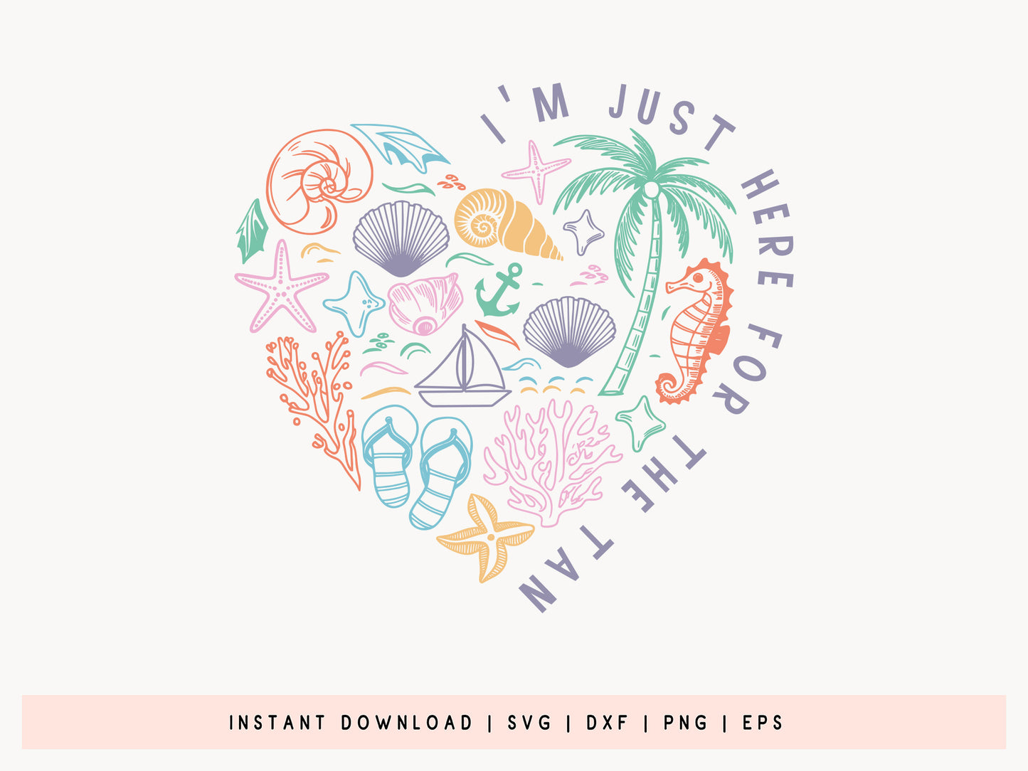 Check out our creative I'm Just Here for the Tan - Summer Vector SVG! It has a heart shape consisting of various beach and nautical elements, along with the phrase "I'm Just Here for the Tan." This hilarious summer SVG is just right for creating t-shirts, beach totes, towels, signs, and so much more. Whether you're jetting off to a an island paradise or just basking in the sun at home, this cute summer SVG design adds a perfect touch of humor and summer vibes. With SVG, DXF, PNG, and EPS files included, it’s fully customizable and Cricut, Silhouette, and other cutting machine compatible. This lively and fun summer SVG file is ideal for summer parties, beach vacations, or as a gift for your friends.