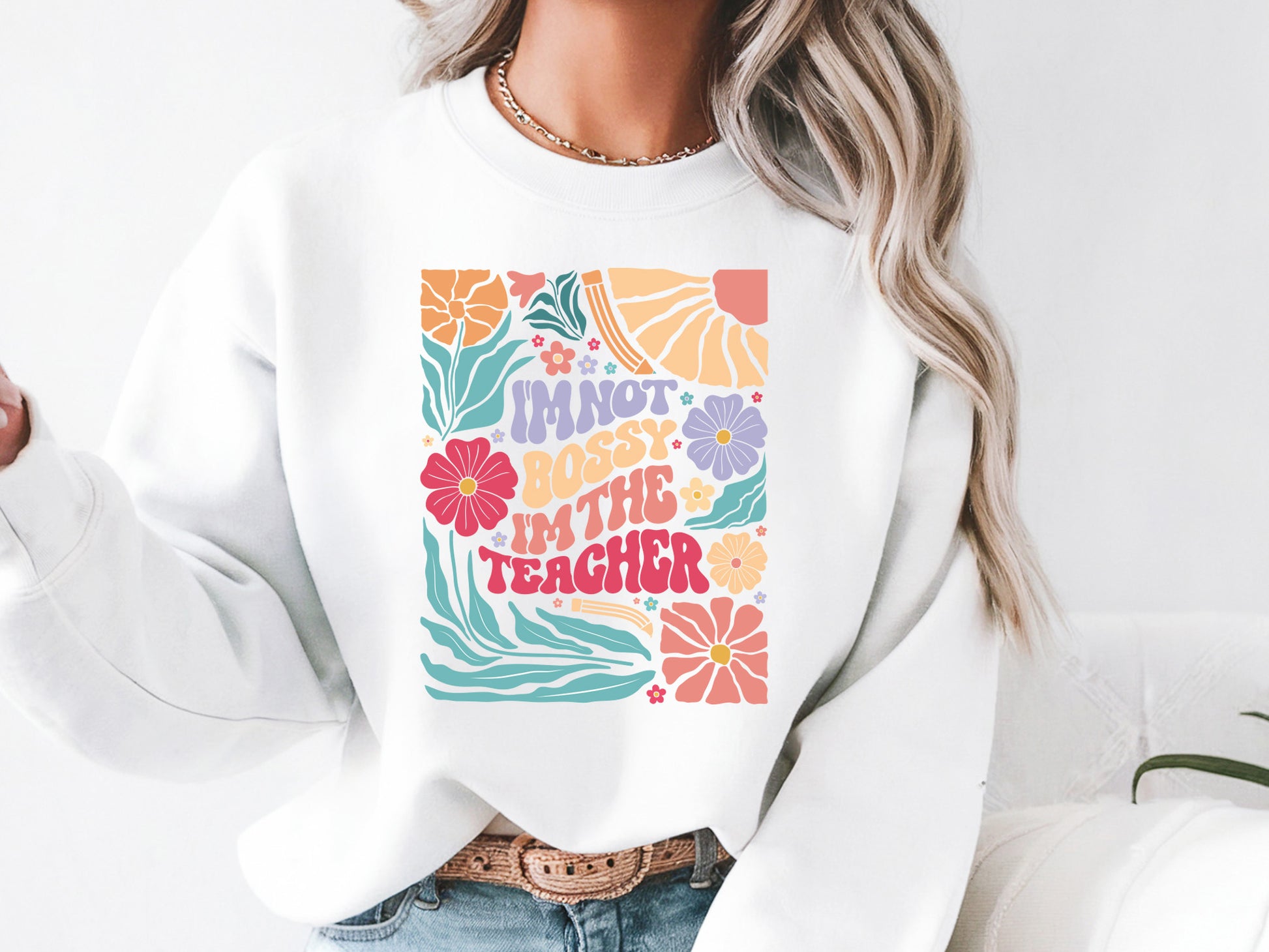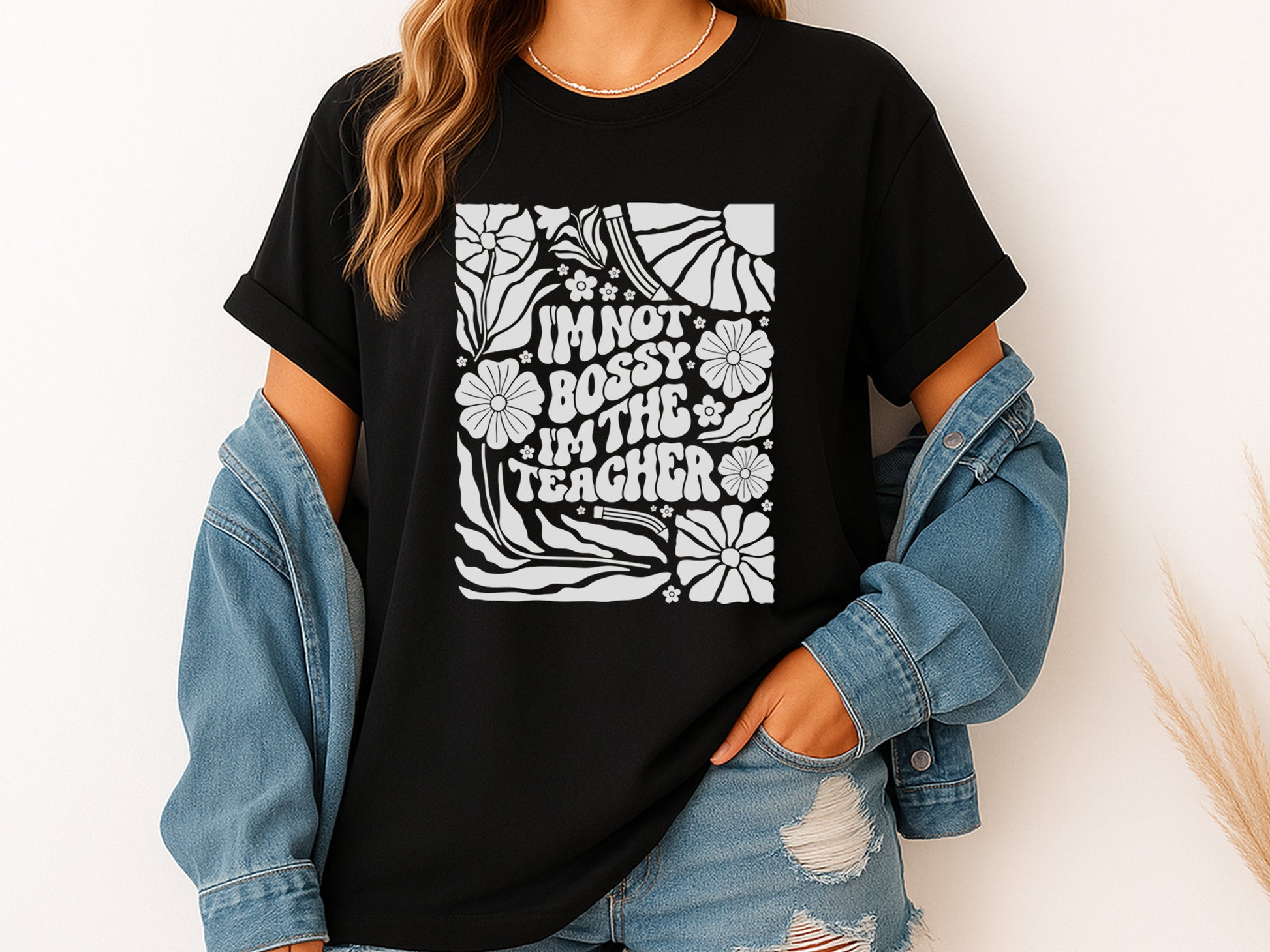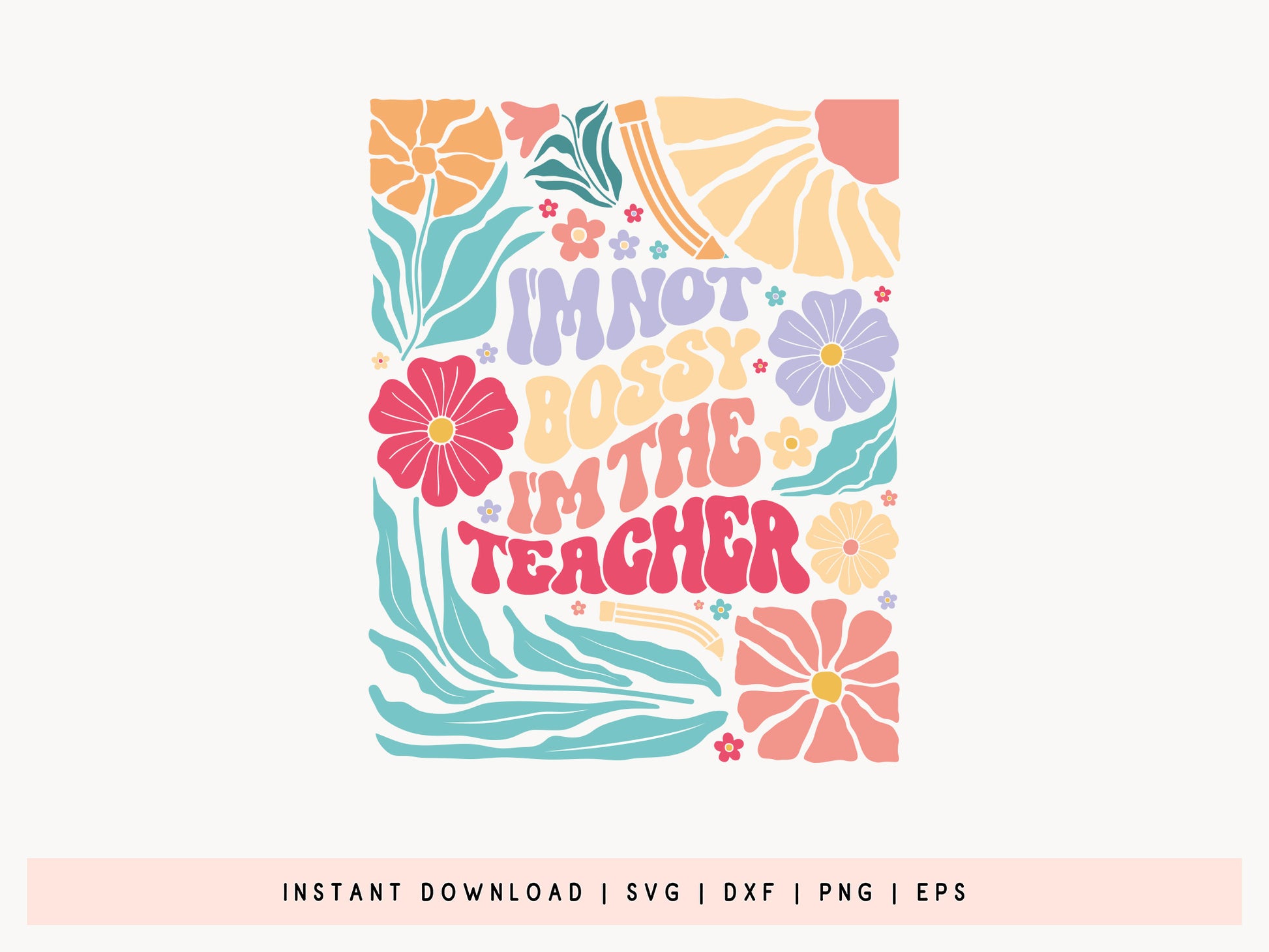 Explore our vibrant I'm not Bossy I'm the Teacher SVG Boho Floral design. This gorgeous, fully customizable cut file is just what you need for creating elegant teacher shirts, delightful classroom décor, trendy tote bags, and thoughtful gifts. With its whimsical floral designs and relaxed boho vibe, the Teacher SVG Boho Floral infuses your teaching space with warmth and creativity. It's compatible with Cricut, Silhouette, and other cutting machines, and you'll find it available in SVG, DXF, EPS, and PNG formats. Whether it's back-to-school, Teacher Appreciation Week, or just sprucing up your classroom, this versatile Teacher SVG Boho Floral is sure to inspire and will make a statement.