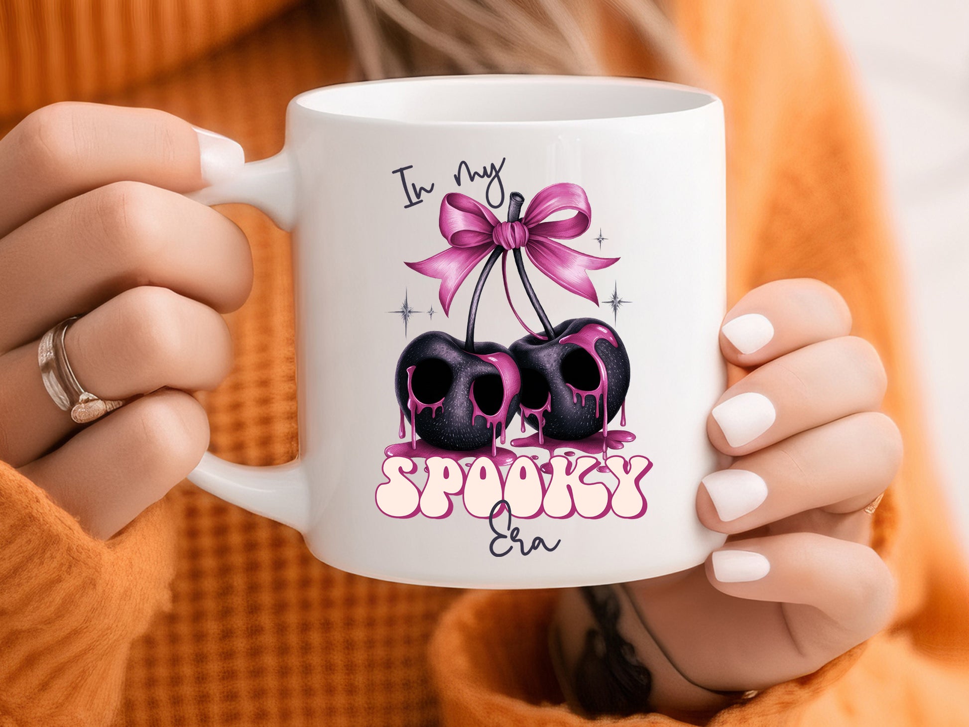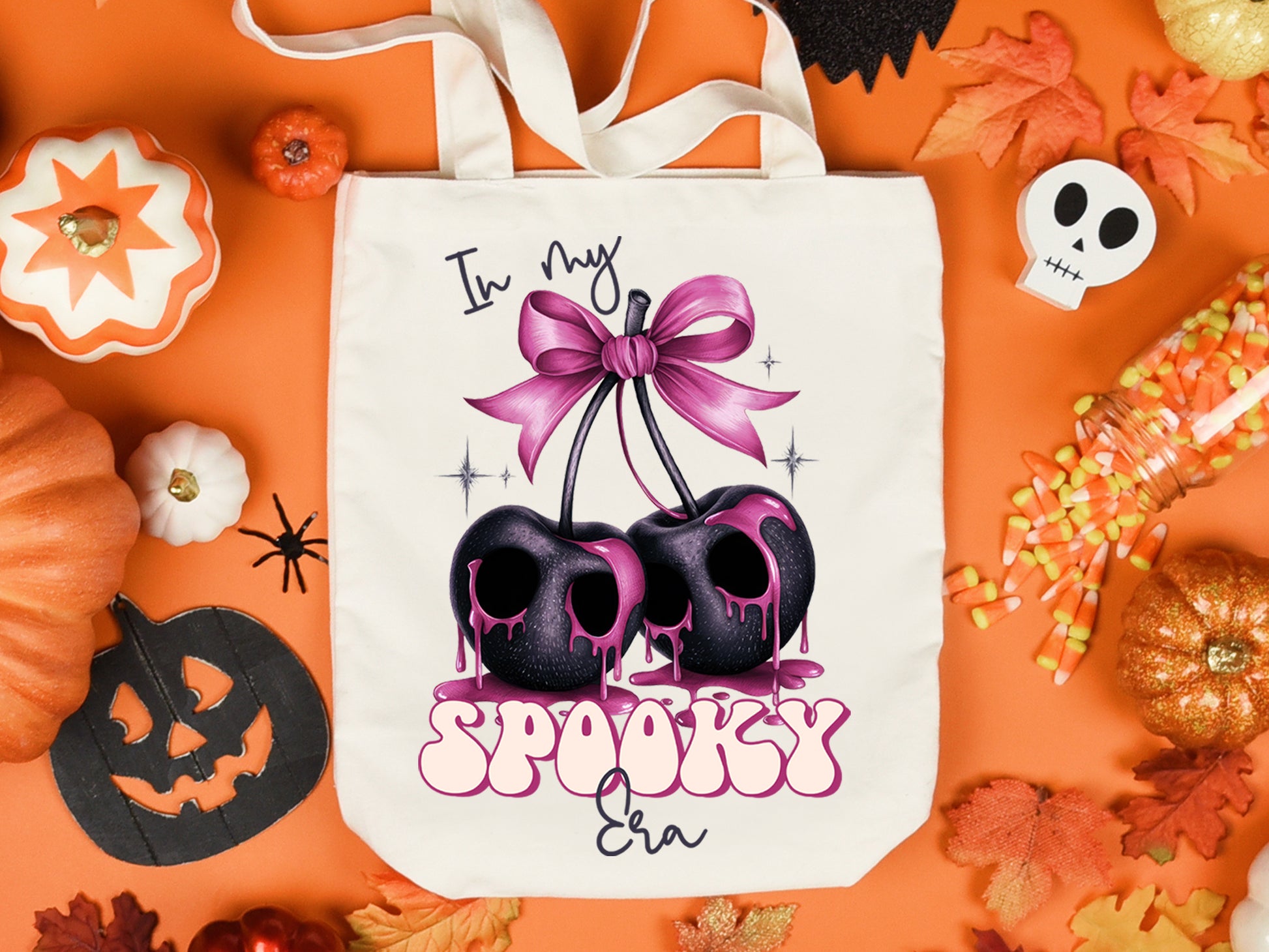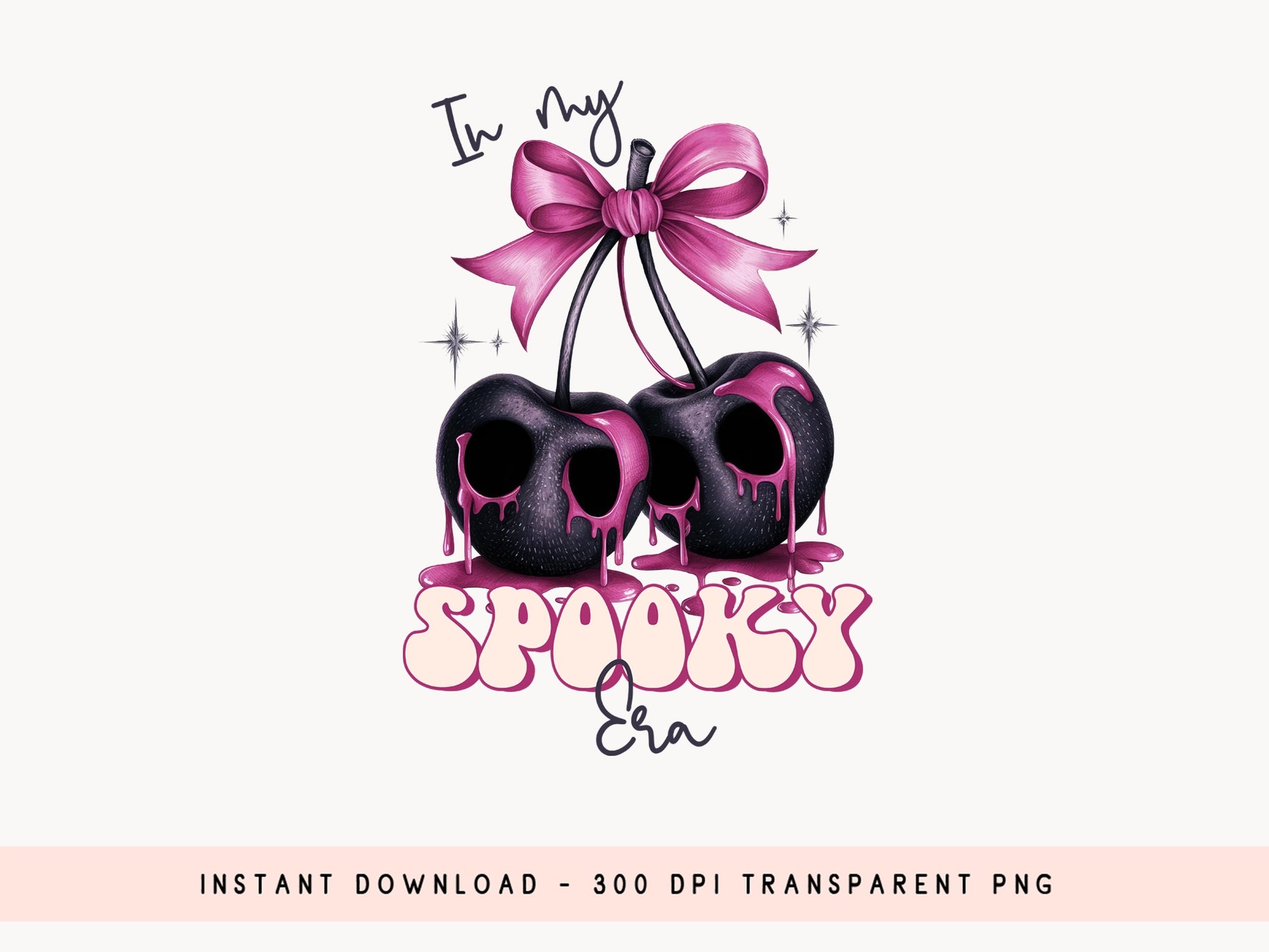 Check out our "In My Spooky Era - Pink Halloween Sublimation Design", perfect for elevating your personalized gifts, apparel, accessories, and decorations. The adorable "In My Spooky Era" design features two black cherries that resemble skulls, dripping with pink liquid and tied with a pink bow. This versatile design is ideal for creating spooky sweatshirts, t-shirts, tote bags, mugs, and a lot more, adding a chic and fierce vibe to all your Halloween projects. You can use this high-resolution design to make personalized gifts for friends and family with DTF and sublimation transfer. Don't wait - Get this Pink Halloween Sublimation design today!