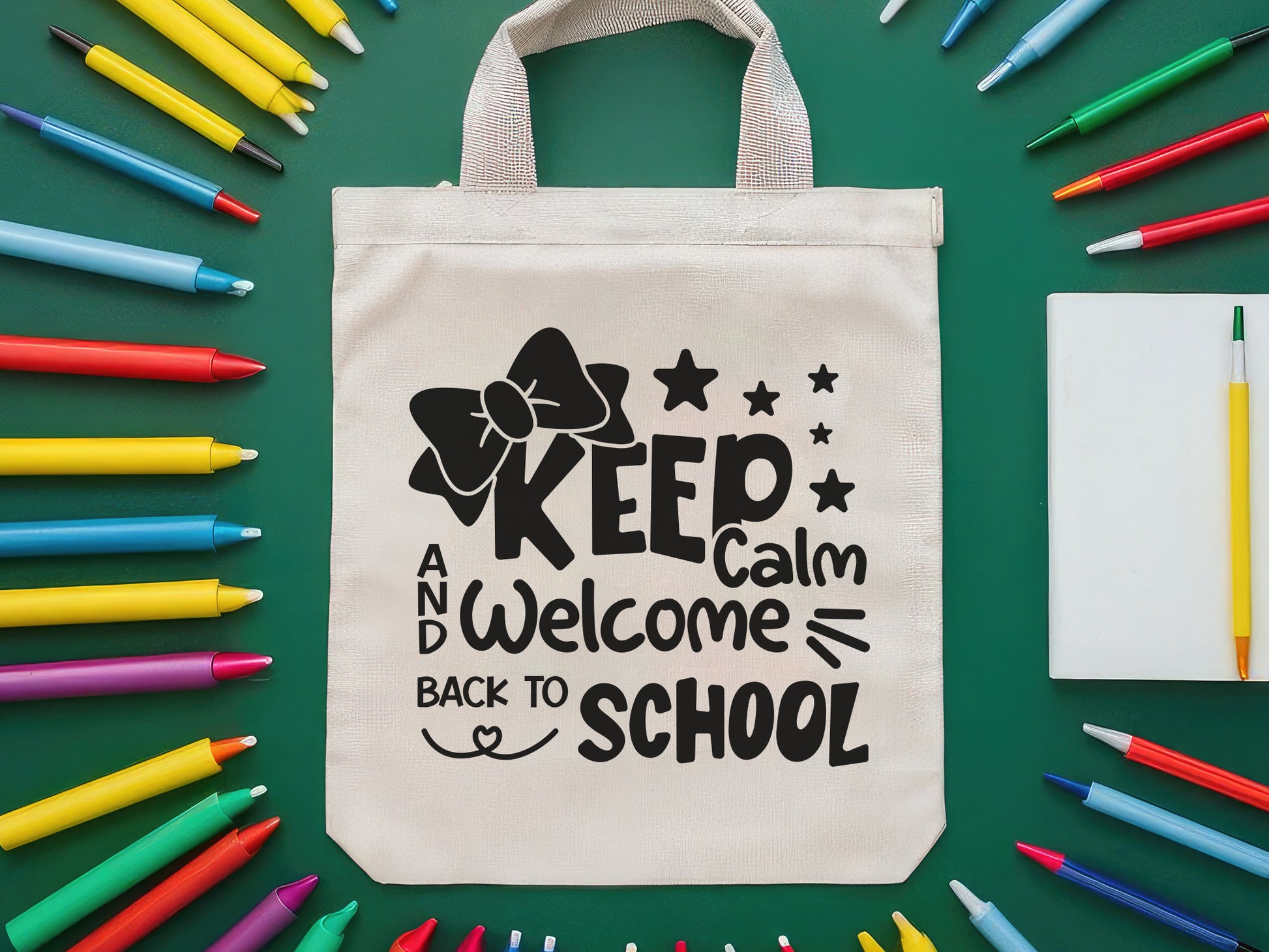 Kick off the school year in style with our Keep Calm and Welcome Back to School SVG! This creative design is just what teachers, students, and crafters need to sprinkle a bit of personality into classroom décor, t-shirts, tote bags, signs, and so much more. Whether you're making something for yourself or creating thoughtful gifts, the Keep Calm and Welcome Back to School SVG is an ideal addition to your diy projects. It works seamlessly with Cricut, Silhouette, and other cutting machines, and comes in SVG, DXF, PNG, and EPS formats. With its clean lines and fun typography, the Keep Calm and Welcome Back to School SVG is super easy to personalize with fonts, colors, or even school mascots. Discover now!