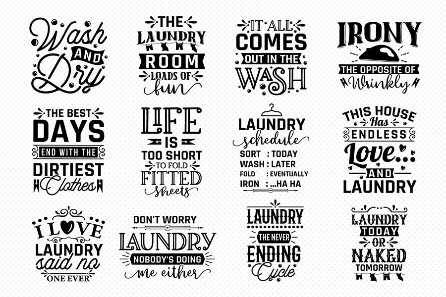Download "Laundry Room Sayings SVG Bundle" and create a personalized touch in your laundry room. This Bundle features 30 captivating Laundry Room Sayings SVG Designs that you can use for various crafting projects. Whether you're looking to adorn your walls, customize linens, or make various laundry-related items, these high-quality designs are perfect for DIY enthusiasts and design-savvy homeowners alike. You can create beautiful signs for your laundry room. Unleash your creative flair and transform the utilitarian nature of the laundry room with Laundry Room Sayings SVG Bundle. Shop now!