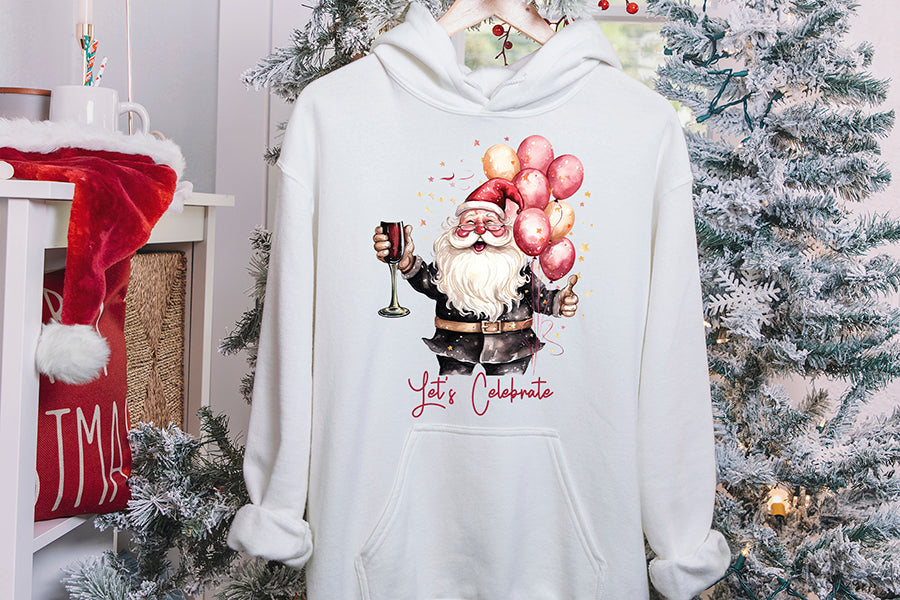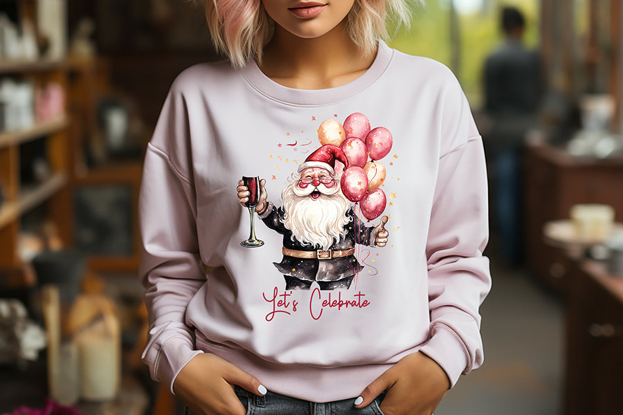 This adorable New Year Sublimation design is the perfect addition for adding a touch of celebration to any New Year's Eve project. It features a festive illustration with 'Let's Celebrate' text. You can use the design for creating New Year's Eve Tshirts, mugs, hoodies, tote bags, pillows, and much more!
