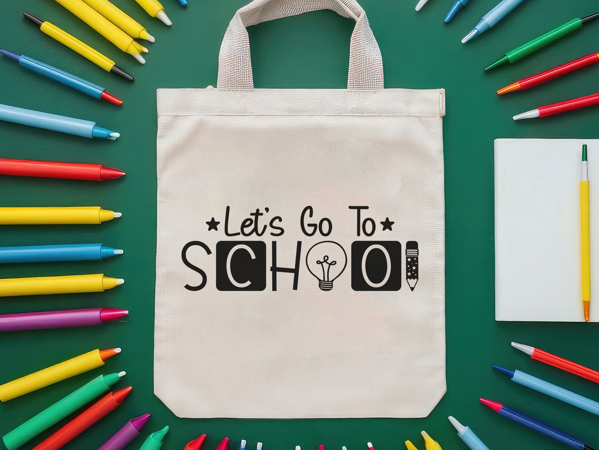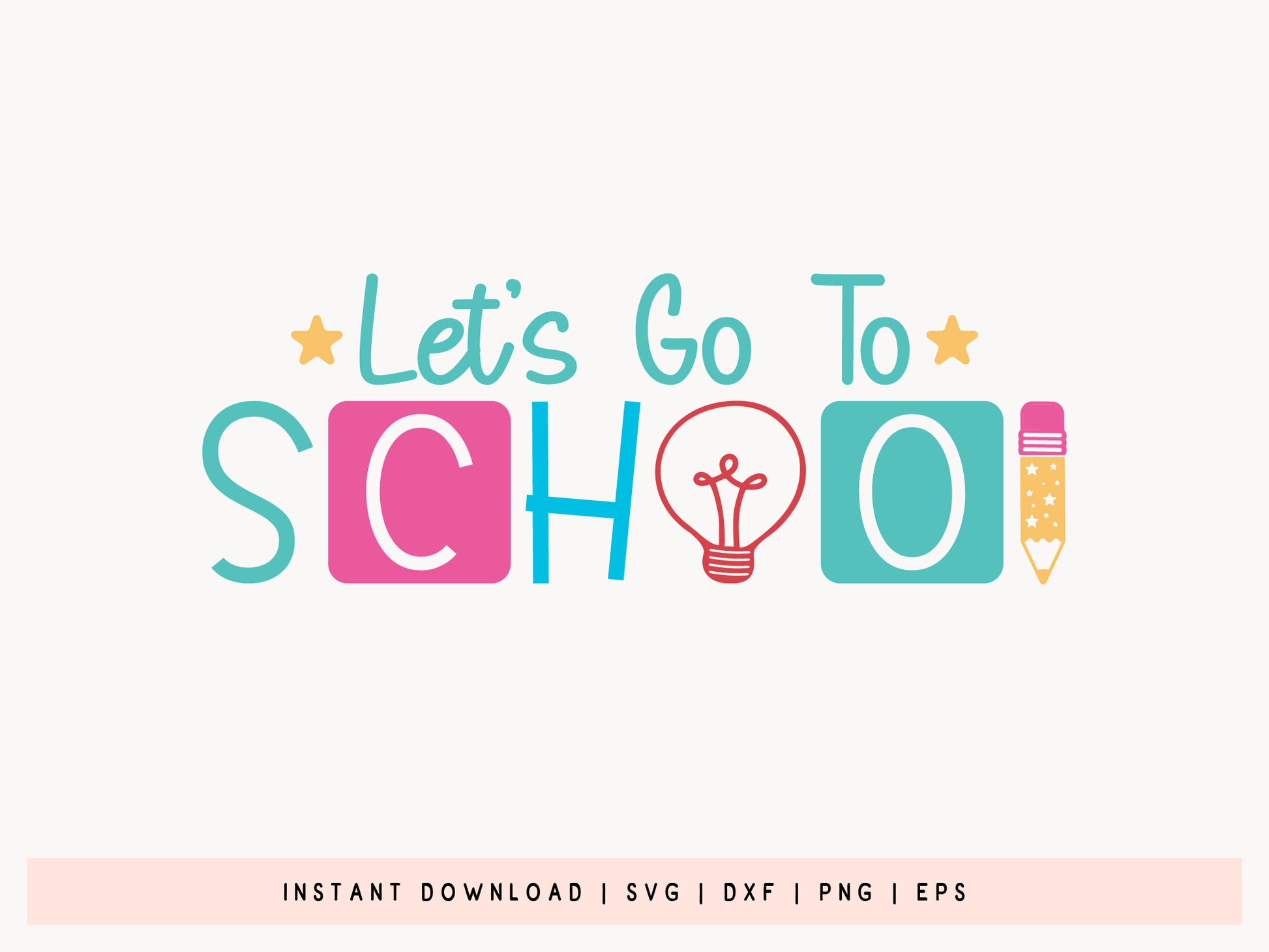 Have a look at our Let's Go to School - Back to School SVG File! This charming design is perfect for teachers, students, and crafters who want to add a unique flair to classroom décor, t-shirts, tote bags, signs, back packs, mugs, and much more. Whether you're crafting for yourself or putting together thoughtful gifts, the Back to School SVG File is a must-have for all your crafts and diy projects. It's compatible with Cricut, Silhouette, vinyl, and other popular cutting machines, and comes in SVG, DXF, PNG, and EPS formats. With its clean lines and playful typography, our Back to School SVG File is easy to customize with fonts, colors, or graphics!
