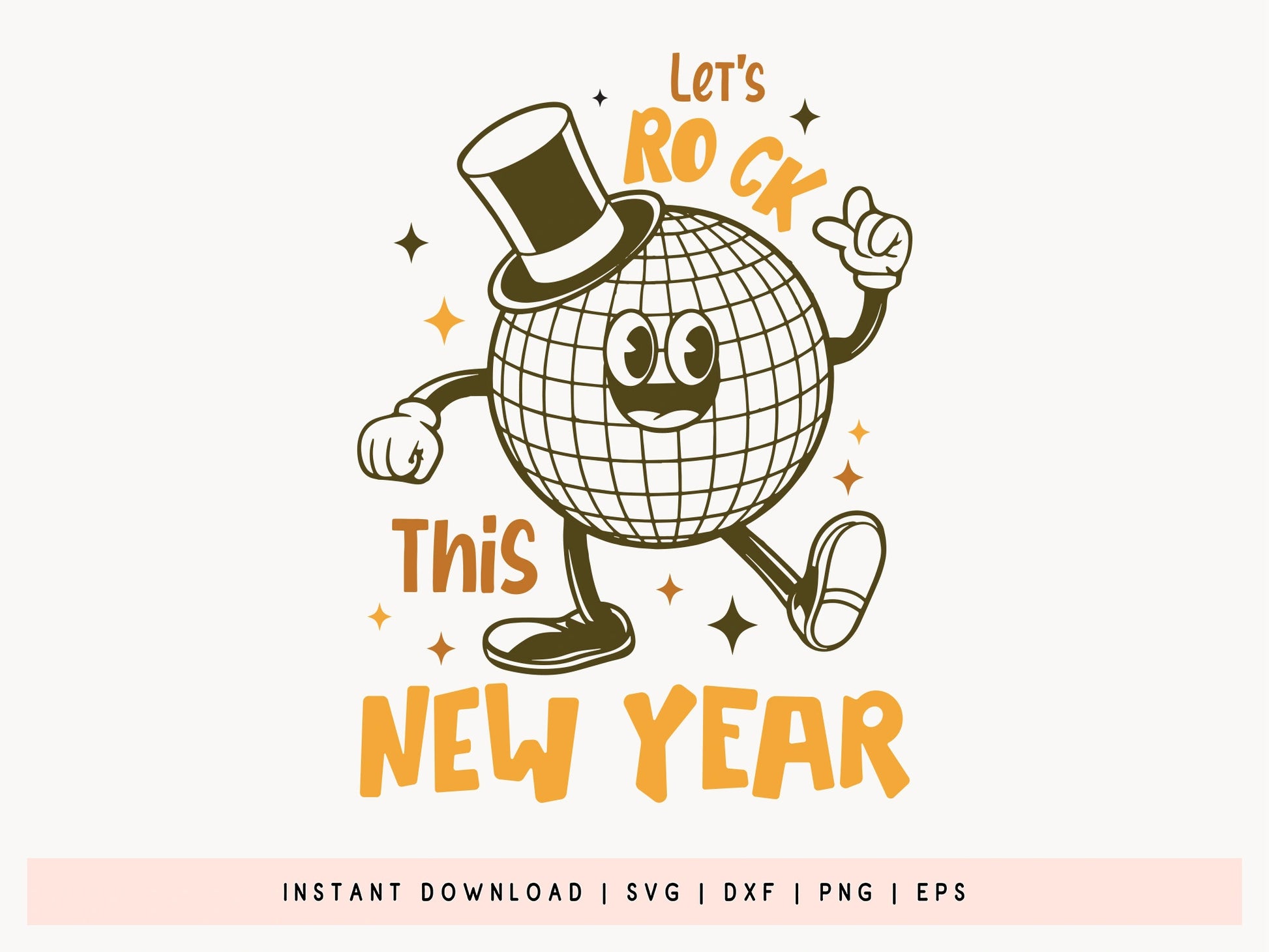 Get ready to make 2025 unforgettable with our Let's Rock This New Year SVG Cut File! Perfect for those looking to start the year with unique style, this dynamic design is ideal for creating t-shirts, mugs, party décor, pillows, and more. With its energetic typography and a playful disco ball character sporting a top hat and dancing with enthusiasm, the New Year SVG Cut File is perfect for setting a positive, rock-and-roll tone for the year ahead. It’s easy to customize for unique New Year’s projects, gifts, and celebrations. Don't wait! Download the "Let's Rock This New Year" design today and start your year with creativity and excitement!