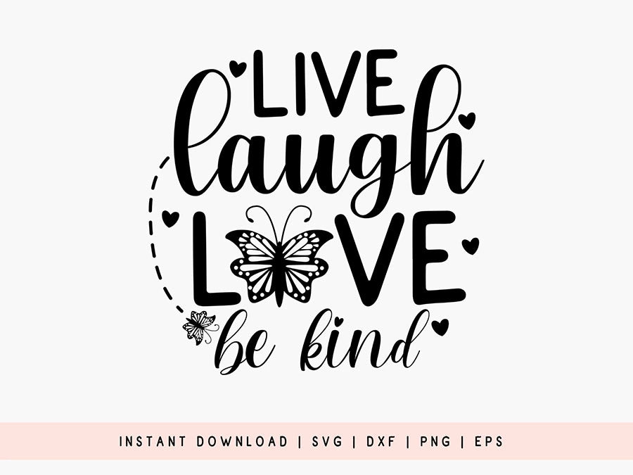 Buy now this "Live Laugh Love Be Kind - Cricut Butterfly SVG", a high-quality, unique and handcrafted design! It features a beautiful butterfly graphic with elegant typography that will enhance your crafts or projects. Whether you are a DIY enthusiast, a creative professional, or simply looking to add a touch of beauty to your projects, this "Live Laugh Love Be Kind" design is perfect for a wide range of physical products such as t-shirts, mugs, tote bags, pillows, signs and more. Grab now and start your butterfly-themed projects!