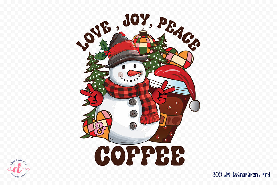 Love Joy Peace & Coffee PNG Sublimation