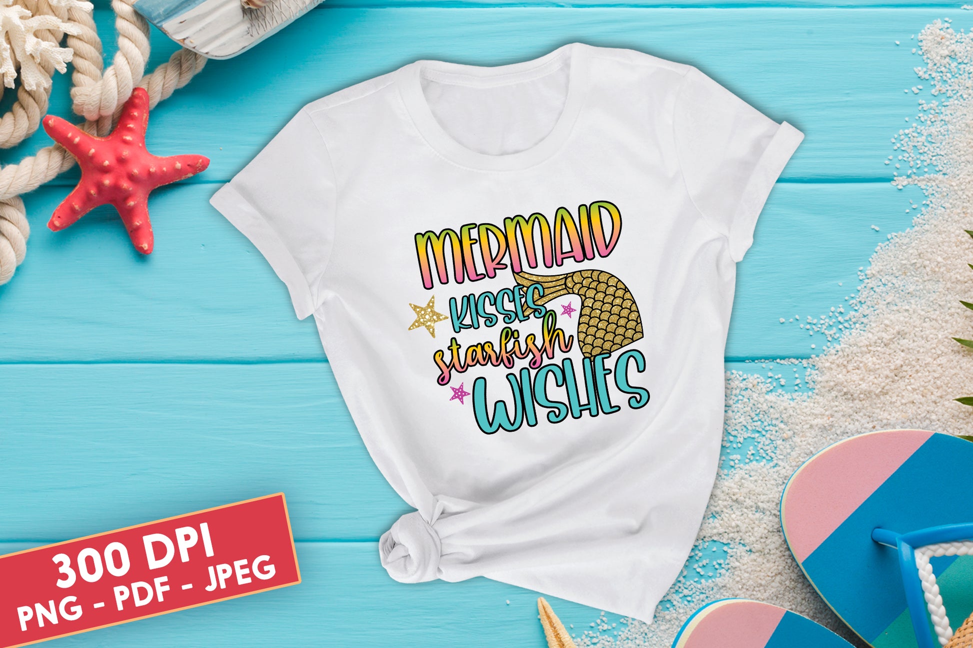 Mermaid Kisses Starfish Wishes, Cute Sublimation Sublimation