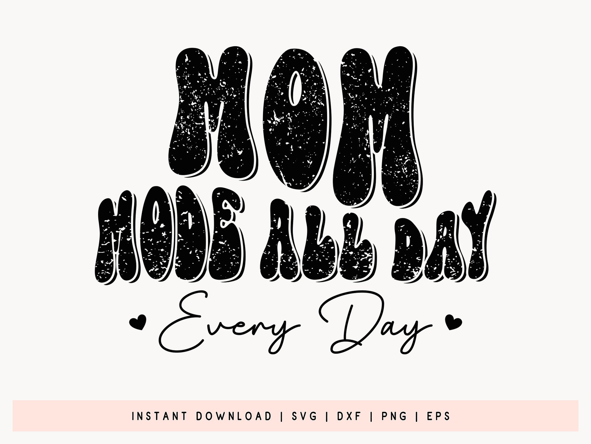 Find the hand lettered Mom Mode All Day Every Day - Cute Mother's Day SVG design! This chic and elegant mom SVG is made with matching fonts with texture patterns and trendy typography, ideal for fashionable moms who enjoy a bit of charm. Whether you’re crafting t-shirts, comfy sweatshirts, cute tote bags, or mugs, the "Mom Mode All Day Every Day" design adds a lovely touch to any project. It’s available in SVG, DXF, EPS, and PNG files, so it can be accessed with Cricut, Silhouette, and other cutting machines for a stress-free crafting process. Perfect for DIY gifts, customized apparel, or home items, this cute Mother’s Day SVG is a unique gem for your upcoming crafting collection. Take your craft projects to the next level with this fabulous mom SVG!