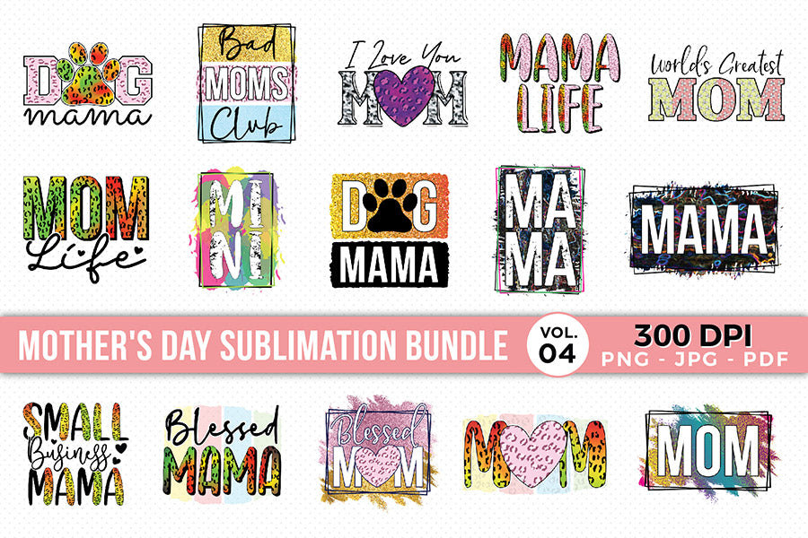 Introducing our Mother's Day PNG Sublimation Bundle, featuring 15 unique and eye-catching designs that can be used for making your personalized gifts, cards and decorations. Want to show your love for mom, this Mother's Day PNG Sublimation Bundle has covered. With its high-resolution graphics makes any project stand out from the crowd. Each design of the bundle can be used for various purposes such as making stunning t-shirts, mugs, bags, totes and more. Download now this amazing "Mother's Day PNG Sublimation Bundle" and create unforgettable gifts and products.